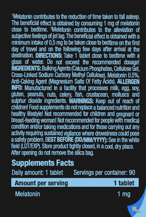 Night Melatonin from Scitec Nutrition is a food supplement formulated with 1 mg of pure melatonin per tablet to help you fall asleep naturally.