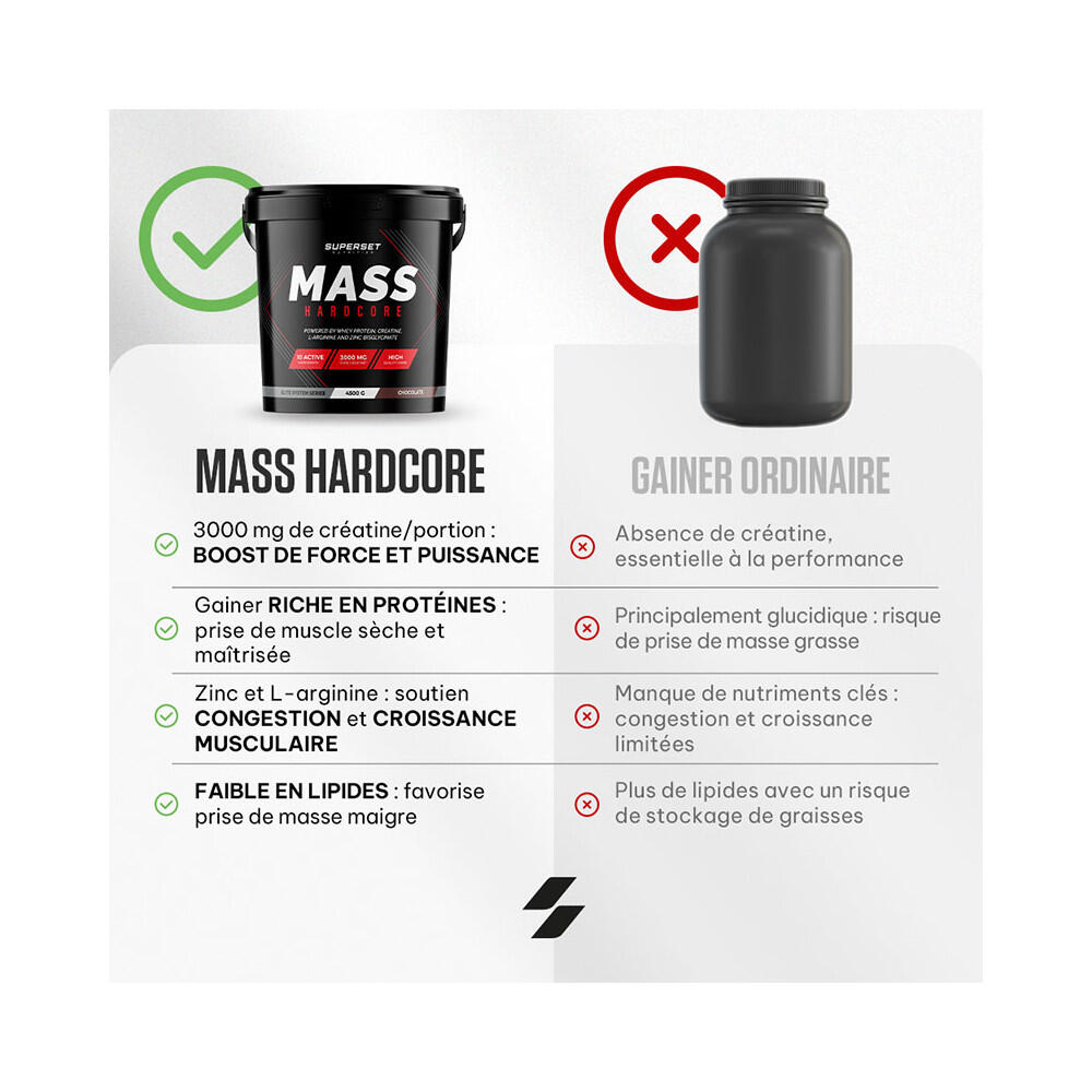 MASS HARDCORE is a formula that contributes to muscle development and boosts your sporting performance by providing extra calories.
