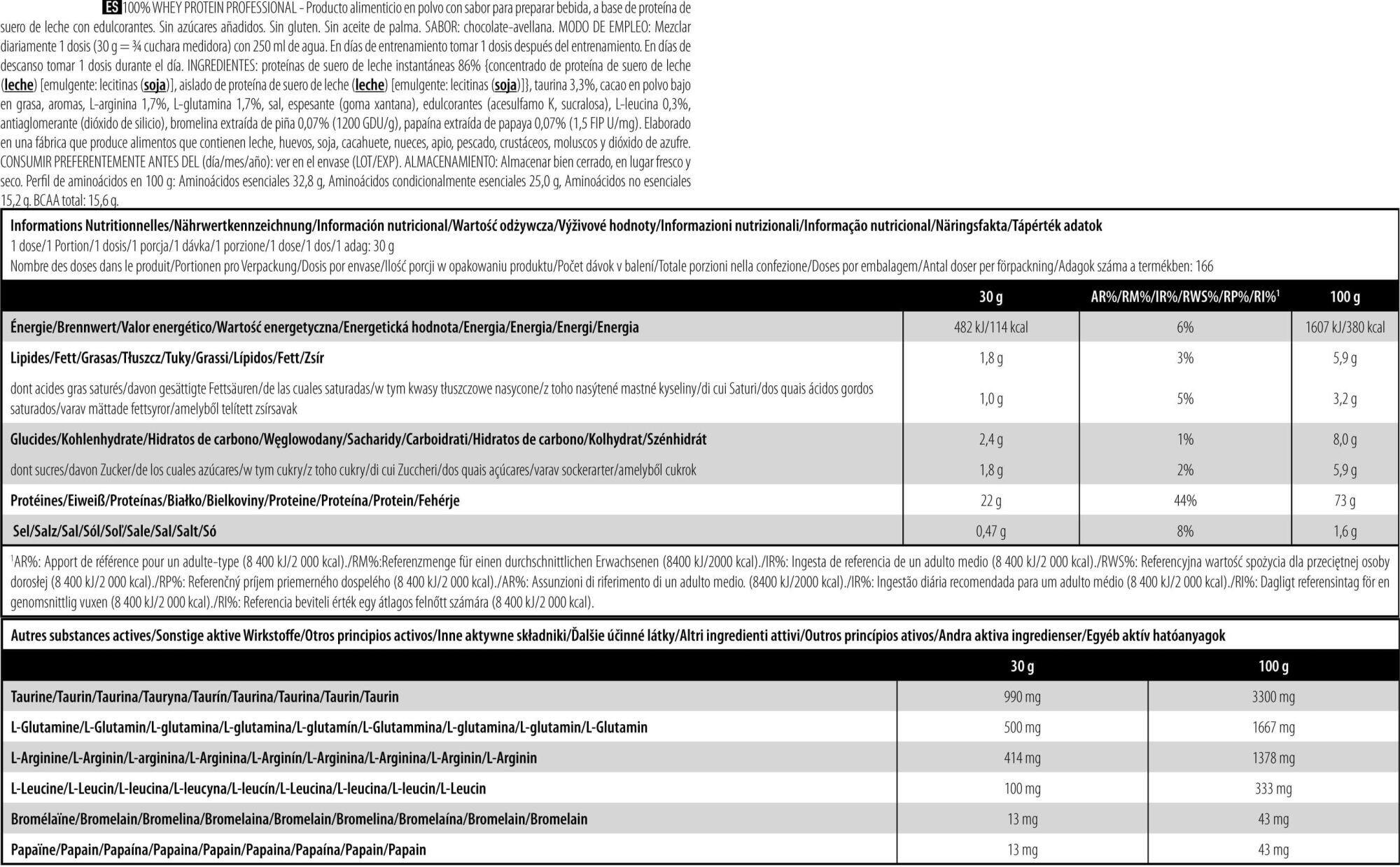 Want to build muscle? Scitec Nutrition has developed a professional protein based on whey concentrate andwhey isolate specifically for bodybuilders.Ideal for promoting muscle growth and lean mass gain, 100% Whey Protein Professional contains all the nutrients essential for muscle development: essential amino acids and branched-chain amino acids also known as BCAAs (Histidine, Isoleucine, Leucine, Lysine, Methionine, Phenylalanine, Threonine, Tryptophan, Valine), as well as two digestive enzymes for perfect assimilation and digestion of the supplement.This protein powder supplement is ideal for bodybuilding/fitness activities, helping to build lean muscle, tone and strengthen the skeleton.Derived from milk protein, whey concentrate and whey isolate are the world's best-selling whey types.In 5kg tubs, 100% Whey Protein Professional is ideal for heavy protein powder consumers.Its low fat and carbohydrate content makes 100% Whey Protein Professional a benchmark for lean mass gain.Available in chocolate, vanilla, strawberry, banana, caramel, chocolate coconut, strawberry white chocolate, cappuccino, chocolate hazelnut, vanilla red fruit, cookies & cream.