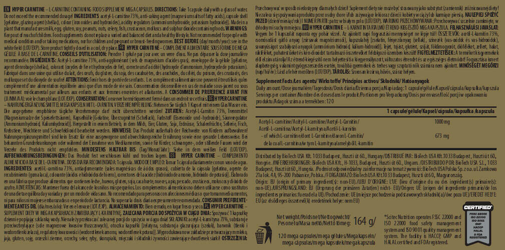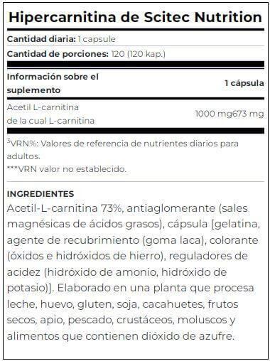 Hyper Carnitine by Scitec is an innovative formula that combines the power of Acetyl-L-Carnitine HCl with an effective dose of 1000 mg per capsule