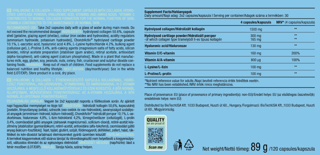 Hyaluronic and Collagen - 120 Capsules Biotech USA