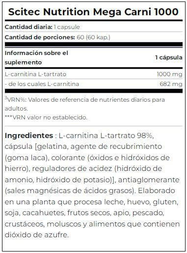 Mega Carni 1000mg from Scitec Nutrition offers a high dose of L-carnitine, ideal for maximizing your performance and supporting your energy metabolism.