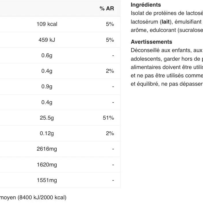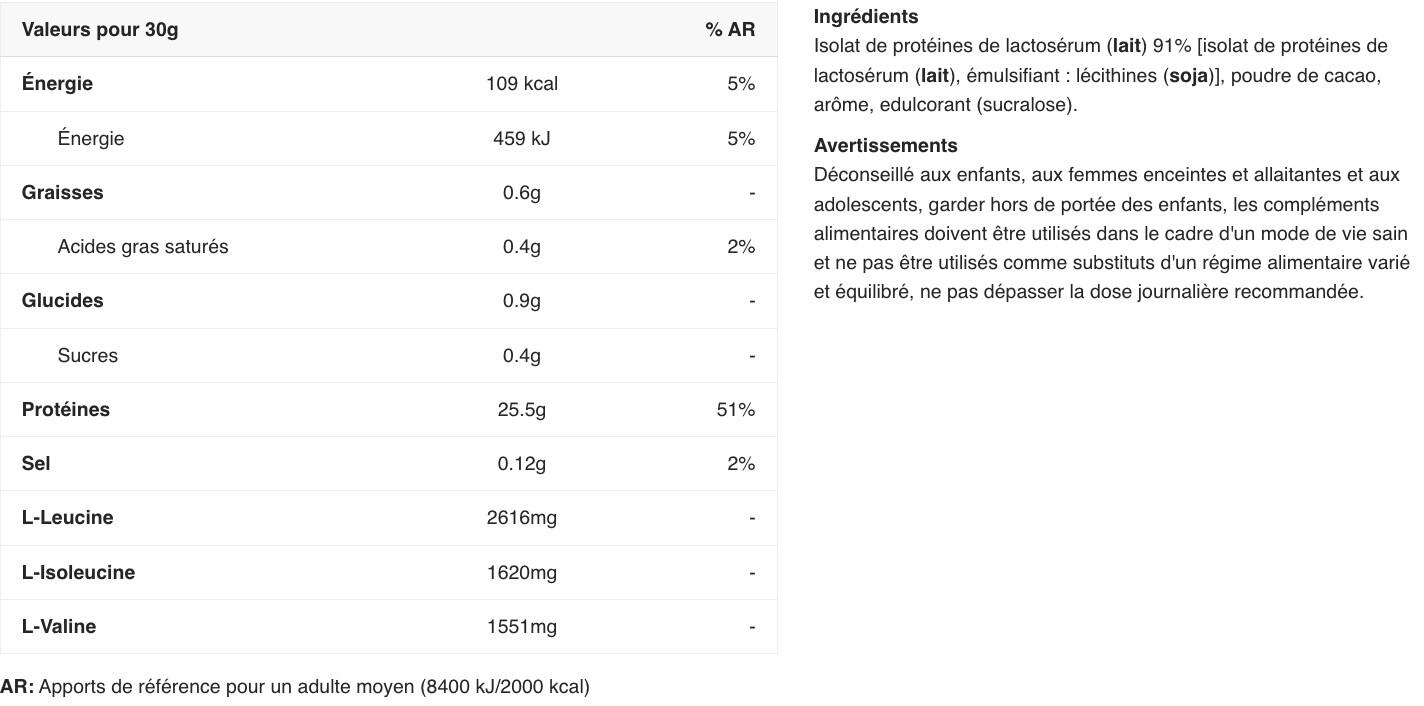 Pure, defatted and lactose-free whey protein isolate without sugar and without aspartame.