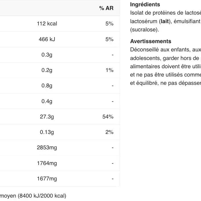 Pure, defatted and lactose-free whey protein isolate without sugar and without aspartame.