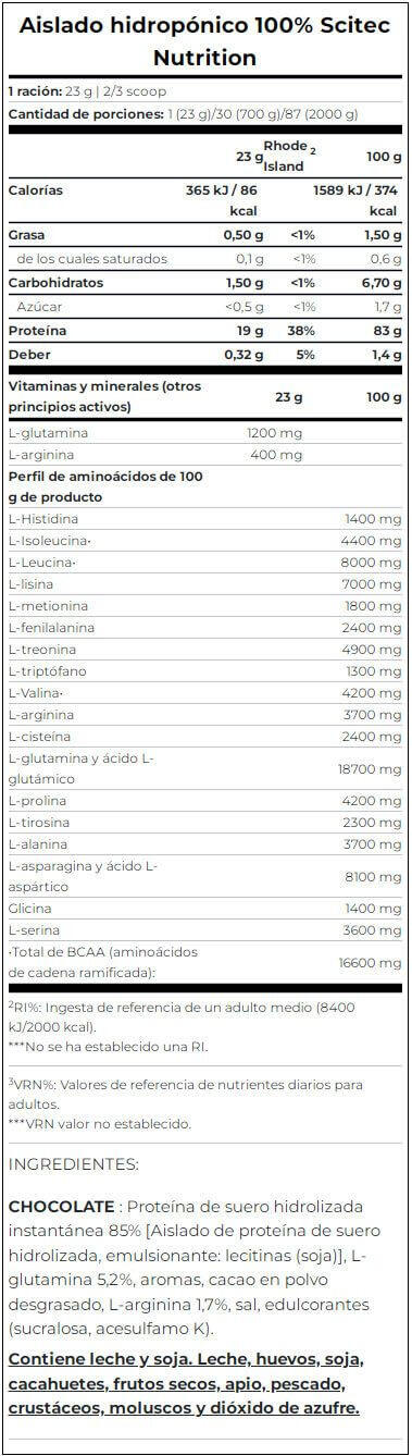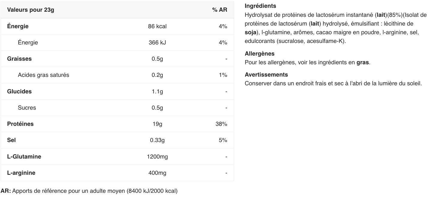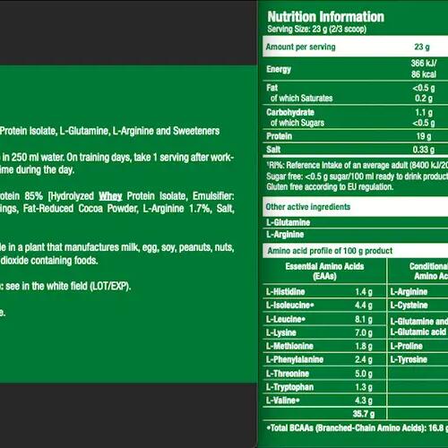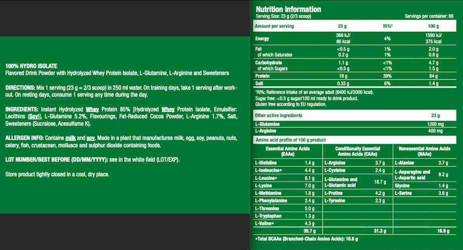100% hydro isolate (2kg) is a high-quality protein containing 19 g of protein and enriched with amino acids. Ideal for dry muscle gain or lean training.