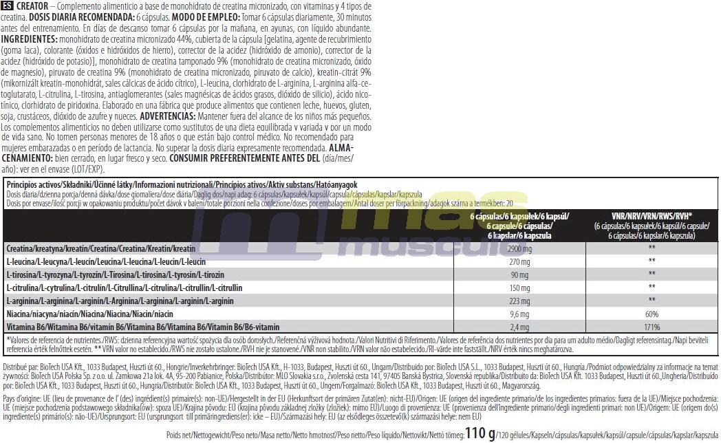 Creator is a product designed by BiotechUSA that will allow you to experience another level of performance in your workouts, taking advantage of greater endurance, strength, energy, and recovery.