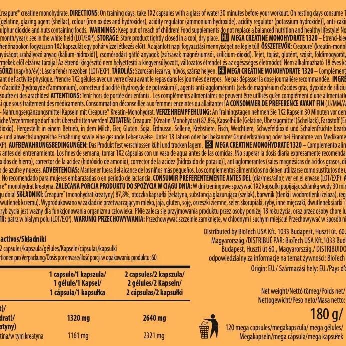 Mega Creatine Monohydrate 1320 from Scitec Nutrition is a food supplement made with a high-purity, high-quality creatine (Creapure) composition.