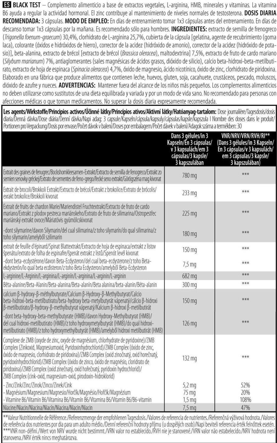 BiotechUSA's Black Test is a dietary supplement composed of an extraordinary formula based on broccoli, beta-alanine, fenugreek, milk thistle, L-arginine, niacin, and ZMB that allows you to maintain