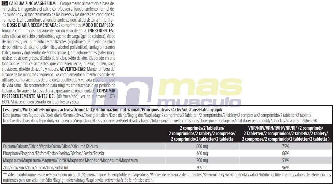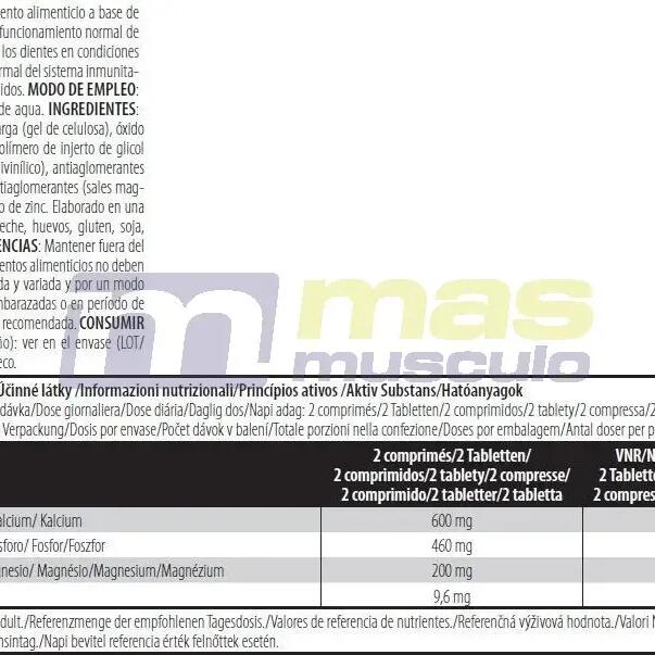 Calcium Zinc Magnesium is a balanced formula that allows for superior absorption of calcium, magnesium, and zinc, and provides the body with other essential minerals such as phosphorus, copper, boron, silicon, and glutamic acid HCl. Calcium is fundamental for maintaining healthy and strong bones, essential for everyone, especially athletes. All active individuals who participate in sports should ensure an optimal supply of calcium, as well as magnesium and zinc. Magnesium improves muscle contraction, increases energy, facilitates detoxification, regulates body temperature, and enhances nerve impulse transmission. This component is essential for the body and especially important for athletes, as magnesium deficiency causes fatigue and muscle spasms.