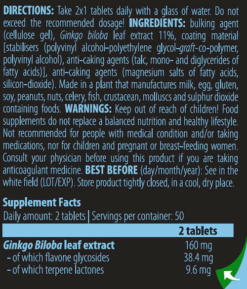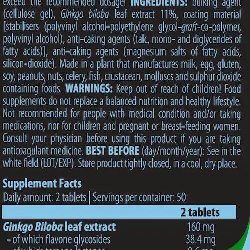 Ginkgo Biloba from Scitec Nutrition provides 160 mg daily of standardized Ginkgo biloba leaf extract