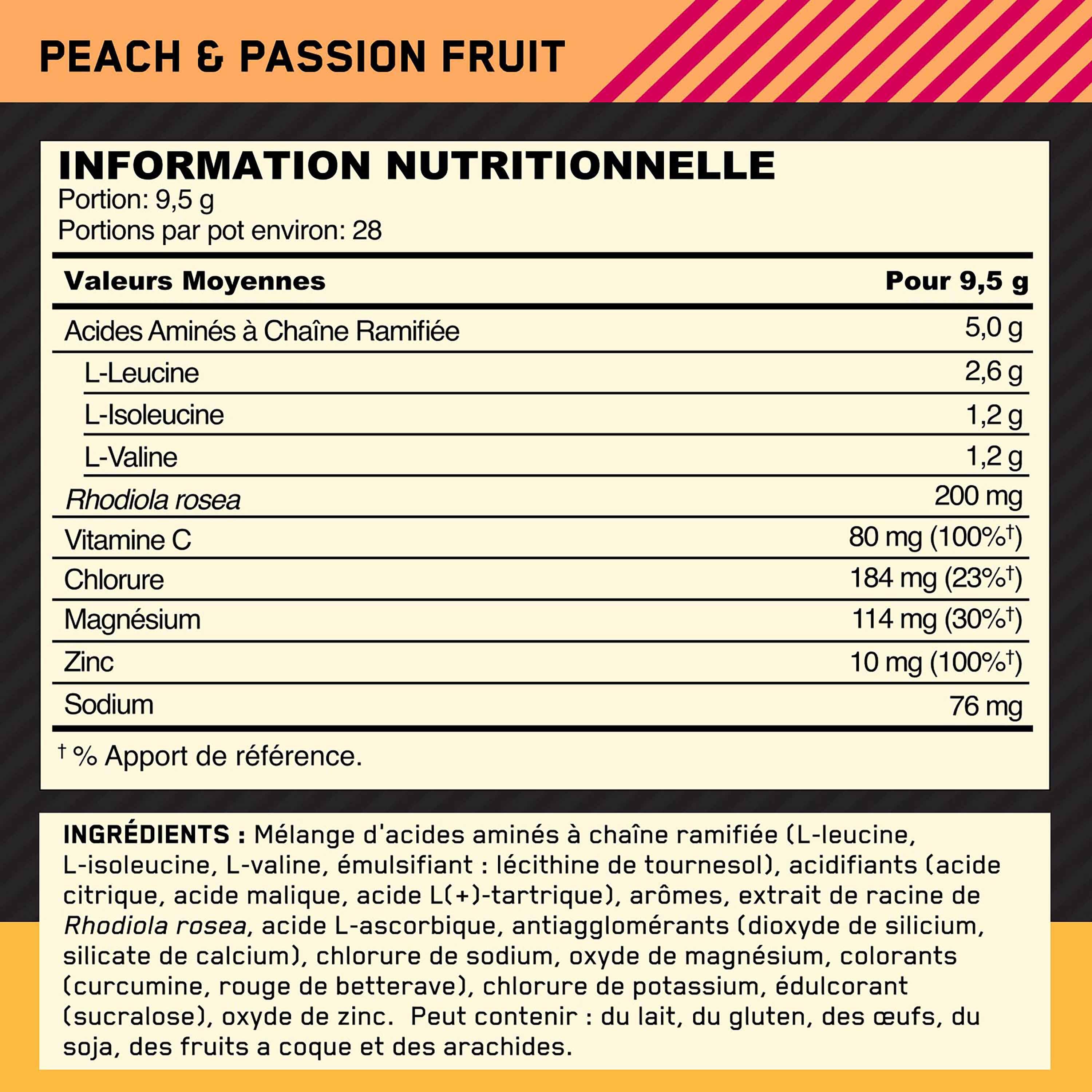 Gold Standard BCAA Train+ Sustain - 266g Peach and Passion Fruit Optimum