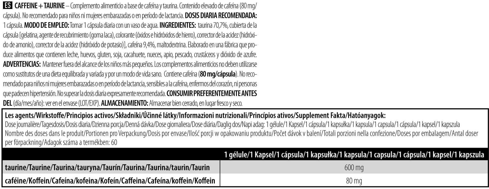 For 1caps Taurine 600 mg Caffeine 80 mg