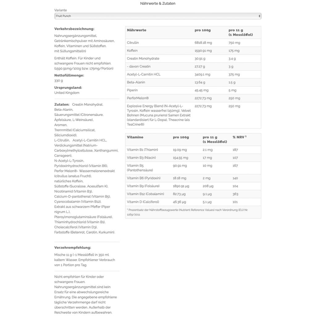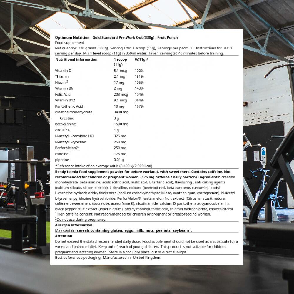 Gold Standard Pre-Workout - 330gr Optimum Nutrition Fruit Punch
