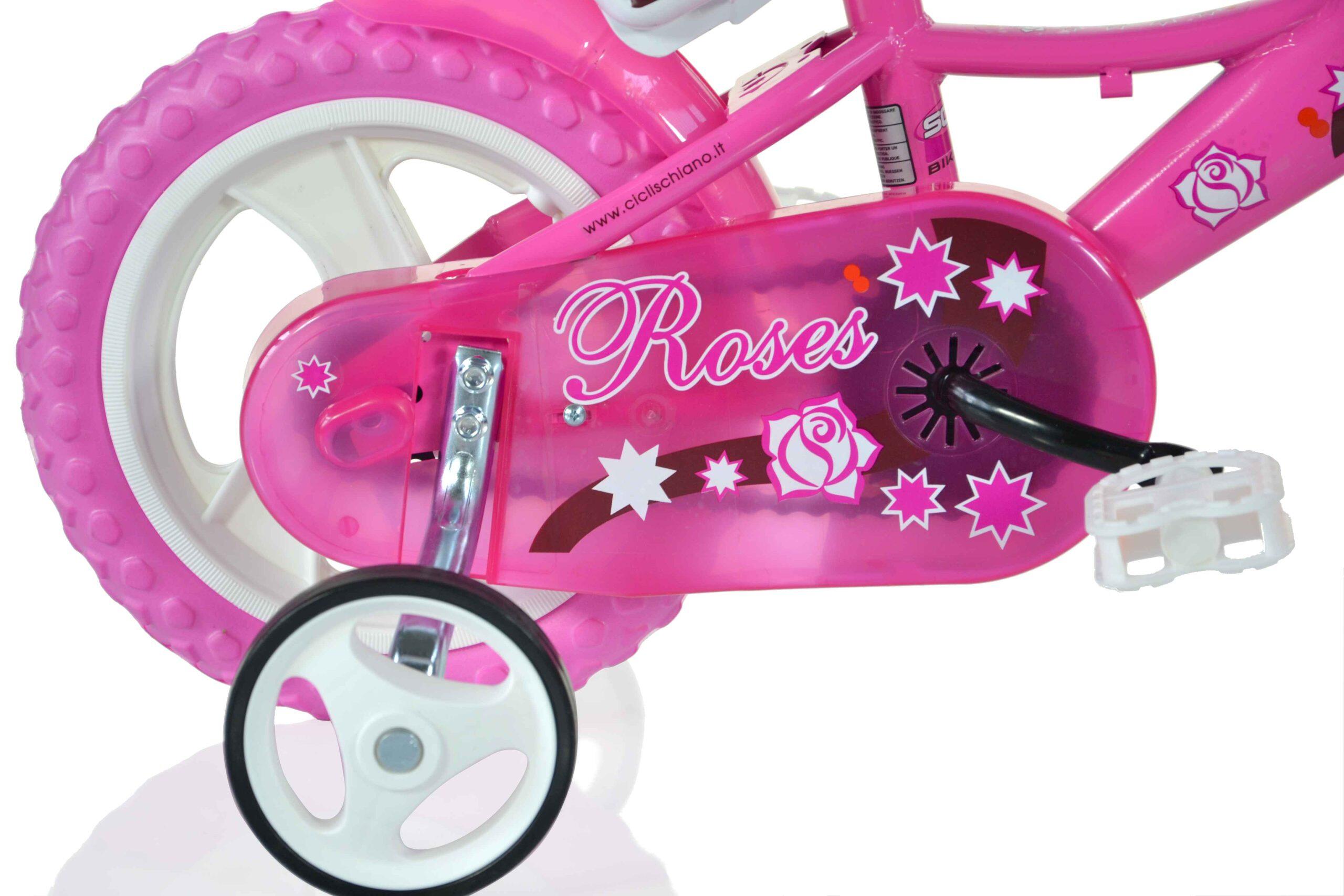 SCH ROSES 14″, children's bicycle, suitable for ages 4 to 6, for heights between 100 and 120 cm, with basket, horn and child seat