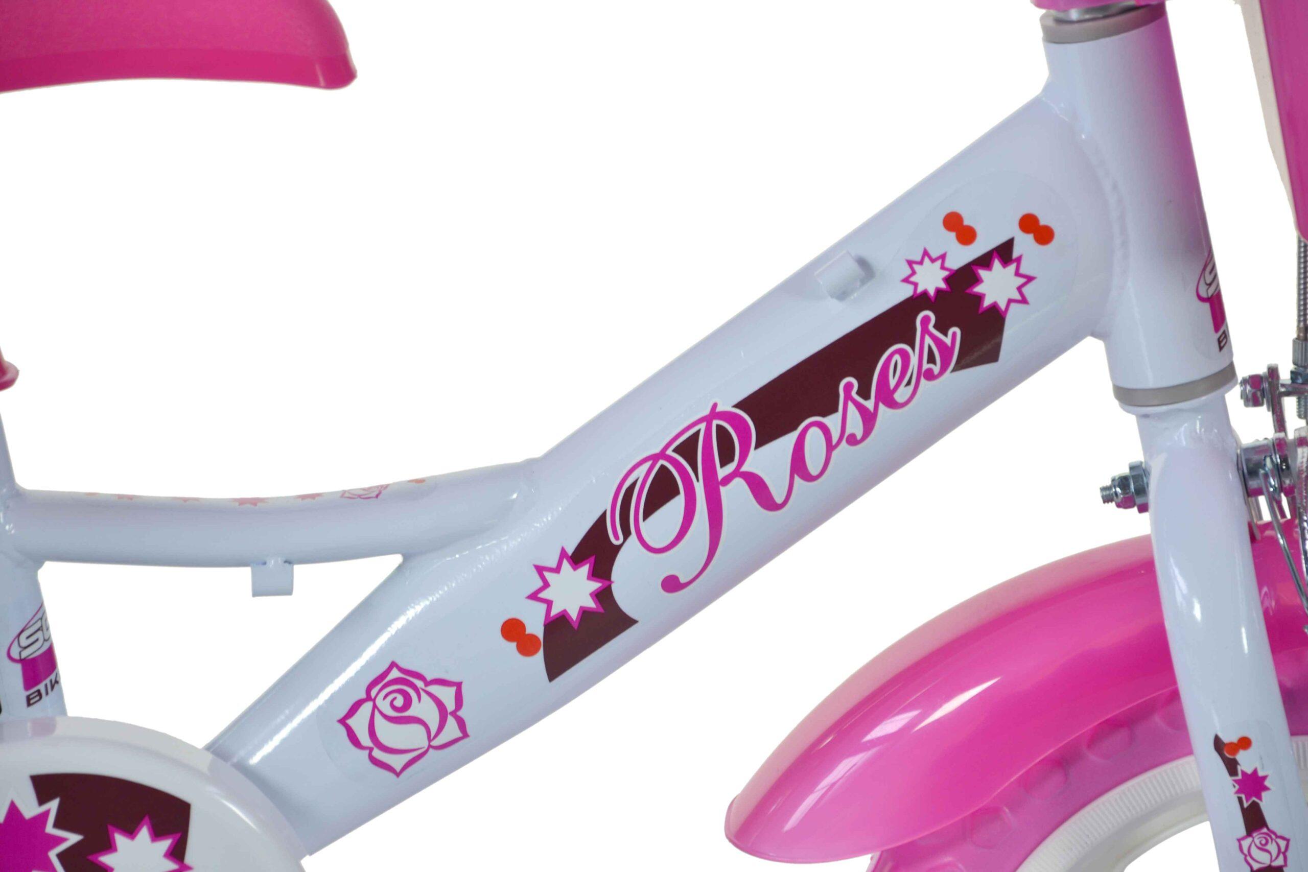 SCH ROSES 14″, children's bicycle, suitable for ages 4 to 6, for heights between 100 and 120 cm, with basket, horn and child seat