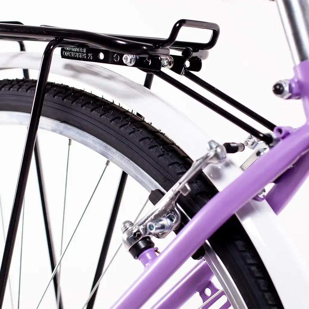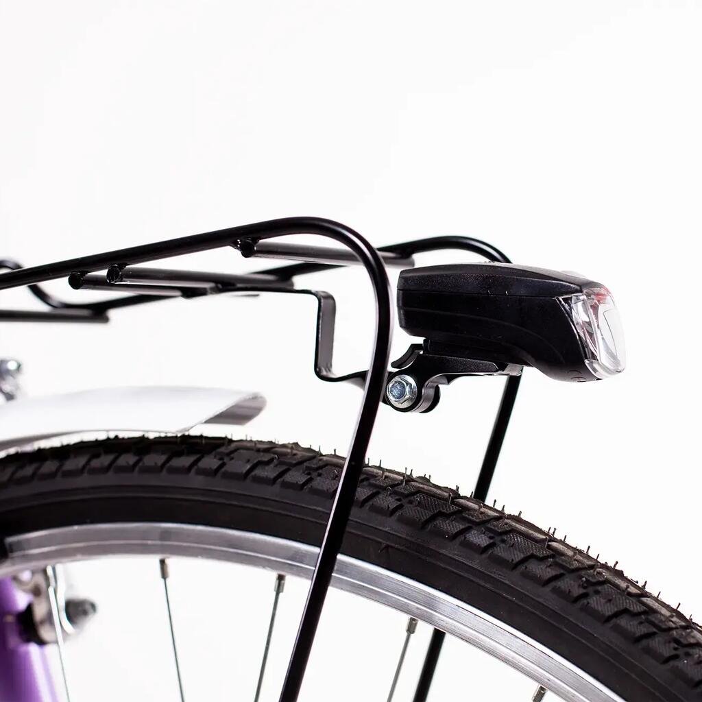 Women's 28 city bike, 1 speed, steel frame, aluminium V-brakes, luggage rack, LED lighting