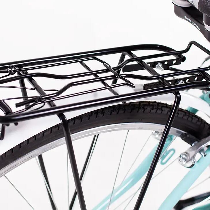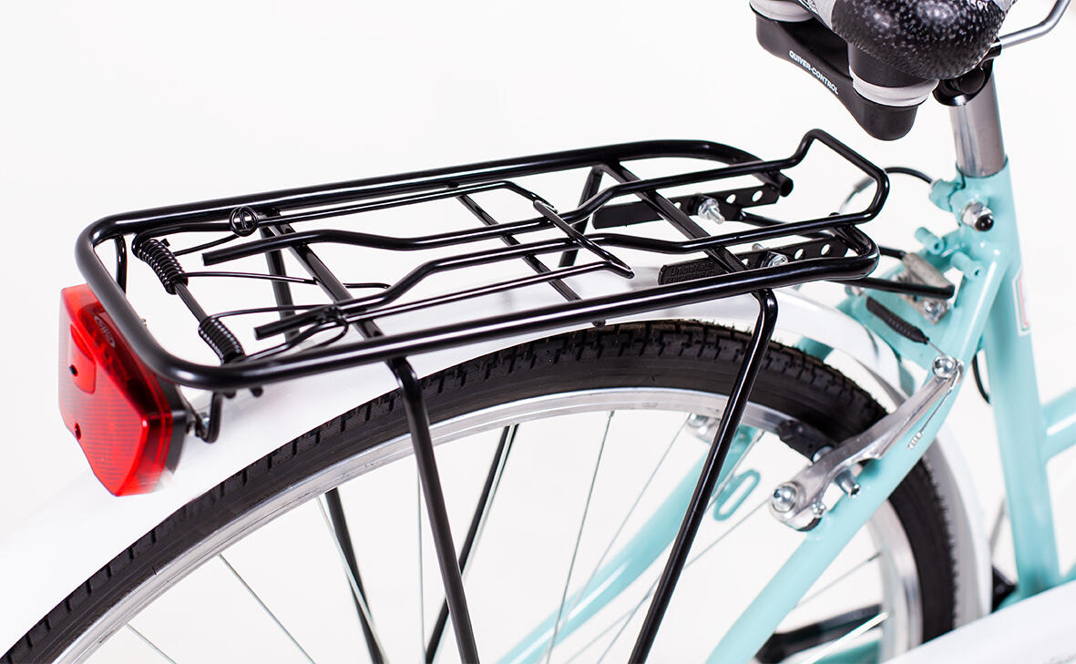 Women's 28 city bike, 1 speed, steel frame, aluminium V-brakes, luggage rack, LED lighting