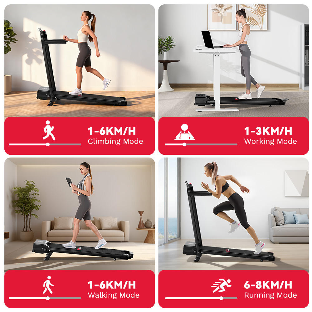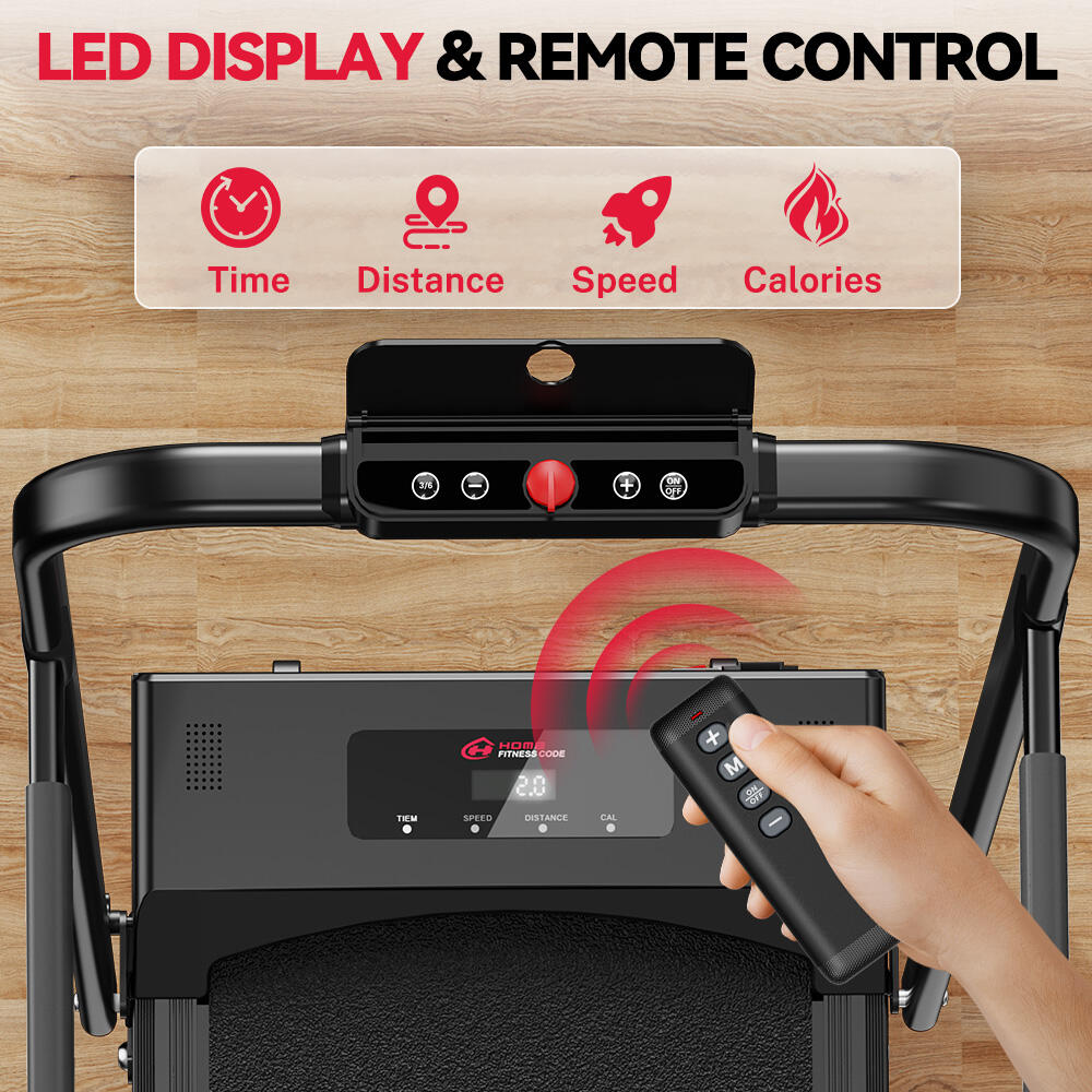Compact foldable treadmill with handrail, 0.65HP motor, LED display, and 1-8 km/h speed—perfect for walking or running at home.