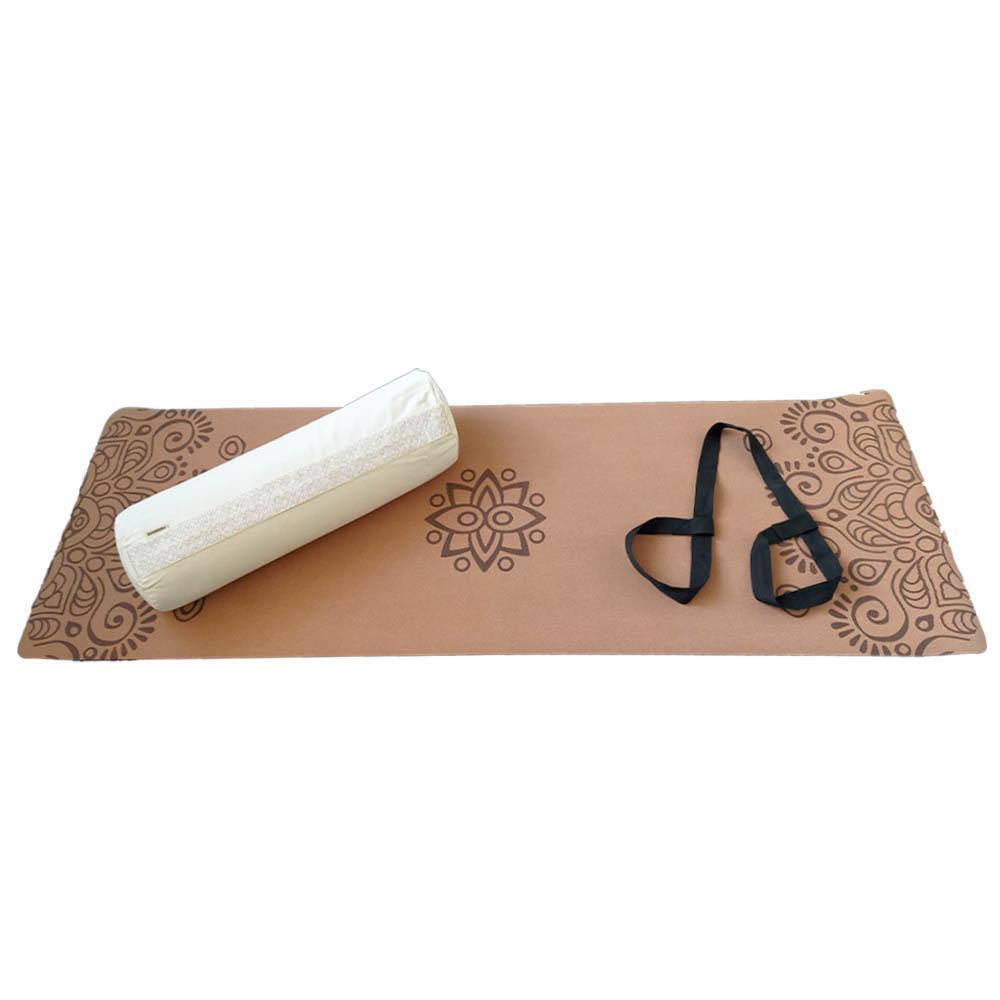 Experience ultimate comfort in your yin yoga practice with our complete kit, including a cork mat, bolster, yoga strap, and massage ball.