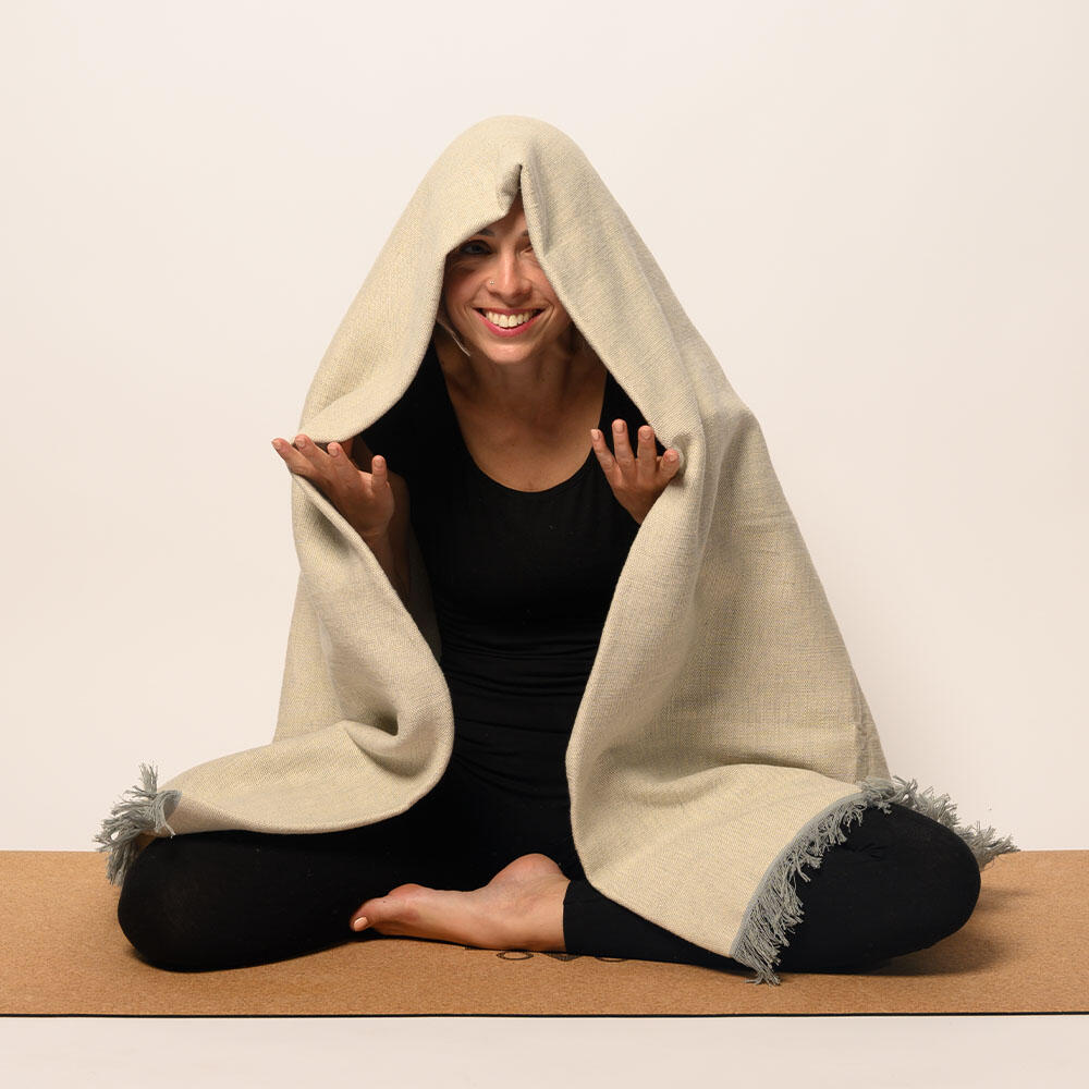 Soft woven cotton yoga blanket—perfect for meditation, relaxation, and cozy yoga poses.