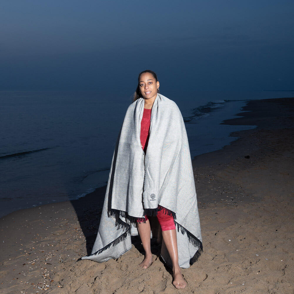 Soft woven cotton yoga blanket—perfect for meditation, relaxation, and cozy yoga poses.