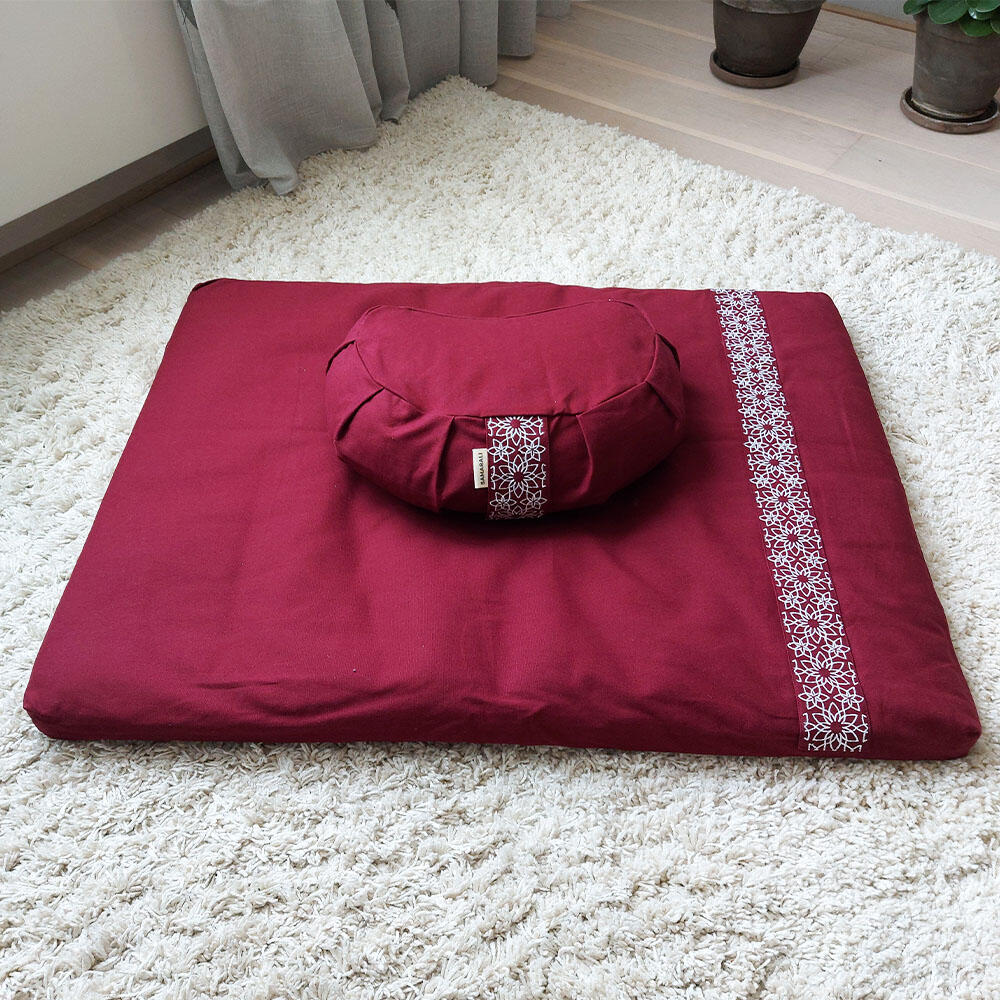 The Samarali Meditation Set with Crescent Cushion is made from GOTS-certified cotton. It is practical, comfortable, and provides excellent support.