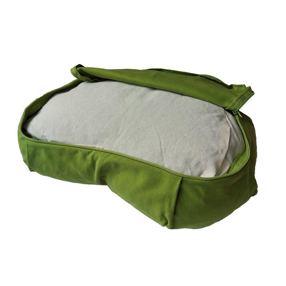 The Crescent Meditation Cushion is made from GOTS-certified cotton, offering practical, supportive, and comfortable seating that provides excellent body support.
