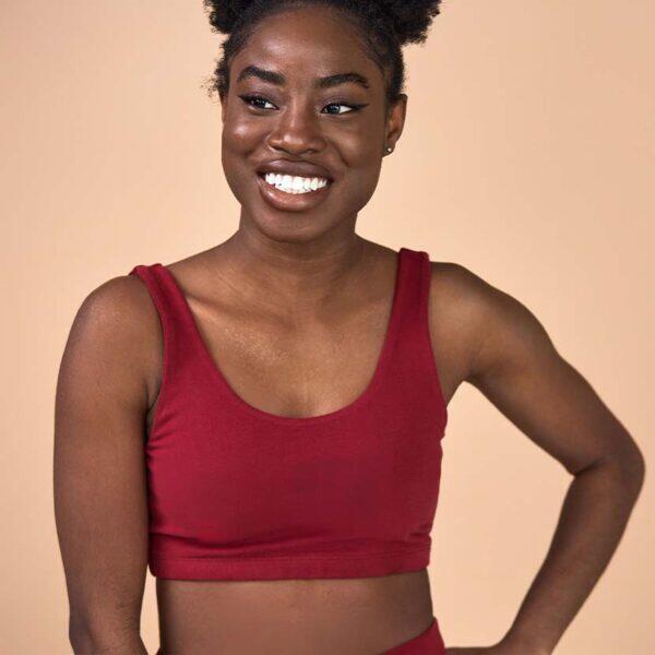 90% cotton, 10% elastane – soft, stretchy, and gentle on the skin. The double-layer design provides reliable support without padding or synthetic inserts.
