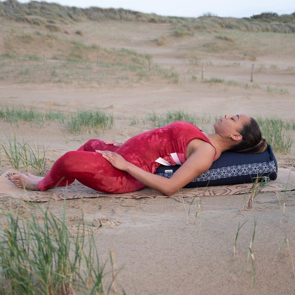 Experience ultimate comfort in your yin yoga practice with our complete kit, including a cork mat, bolster, yoga strap, and massage ball.