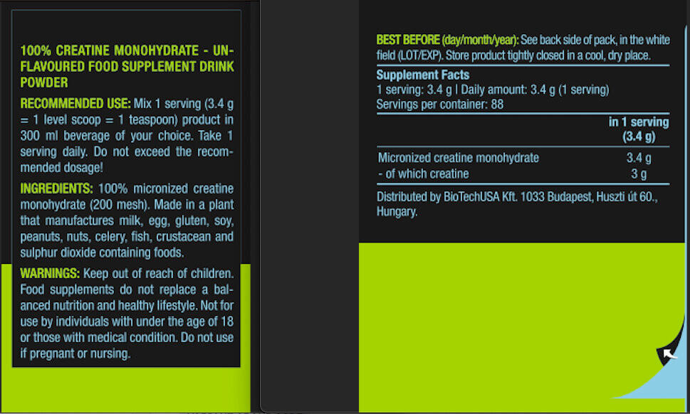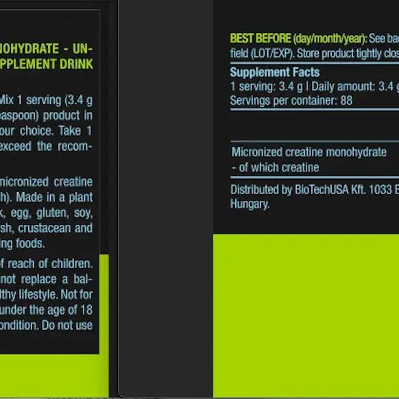 BiotechUSA's 100% Creatine Monohydrate is a pure, micronized creatine that enhances energy availability during intense workouts. Its high solubility and purity ensure optimal absorption.