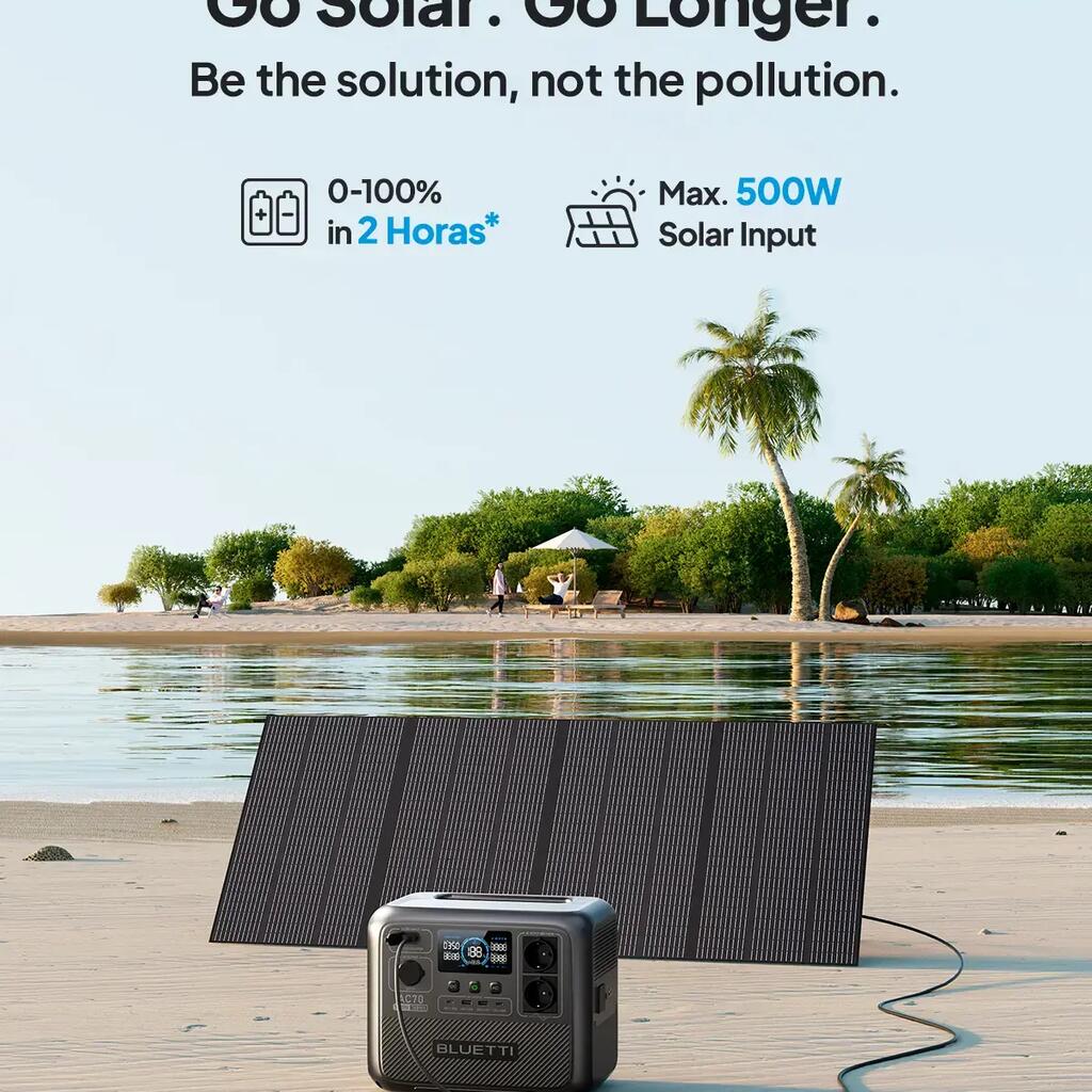 - Up to 500 W solar power input – Fully charged in approximately 2 hours using solar panels