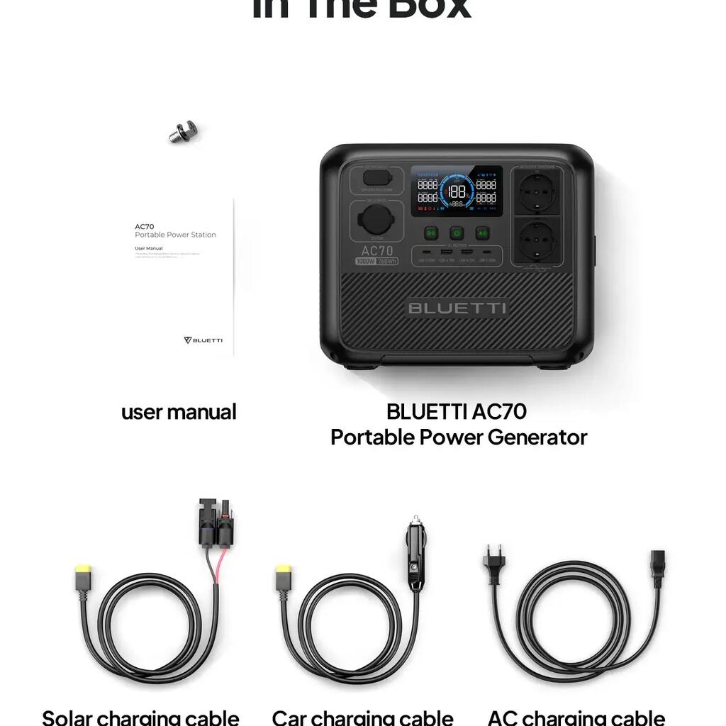 The AC70 features BLUETTI Turbo Charging technology with an input power of up to 850 W AC. In fast charging mode, it reaches 80% in just 45 minutes and is fully charged in about 1.5 hours – perfect for last-minute preparations for camping trips or power outages.