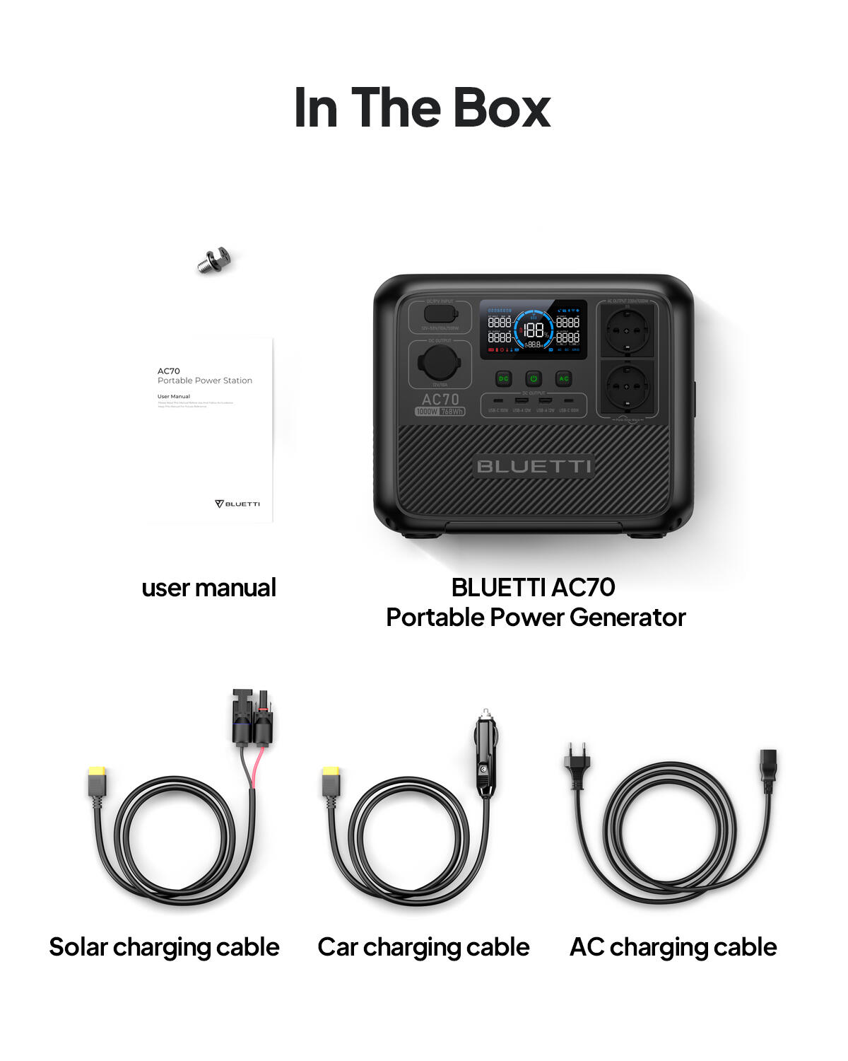 The AC70 uses lithium-ion phosphate batteries (LiFePO4) for safety and durability, which guarantee more than 3,000 charge cycles while retaining 80% of the capacity.