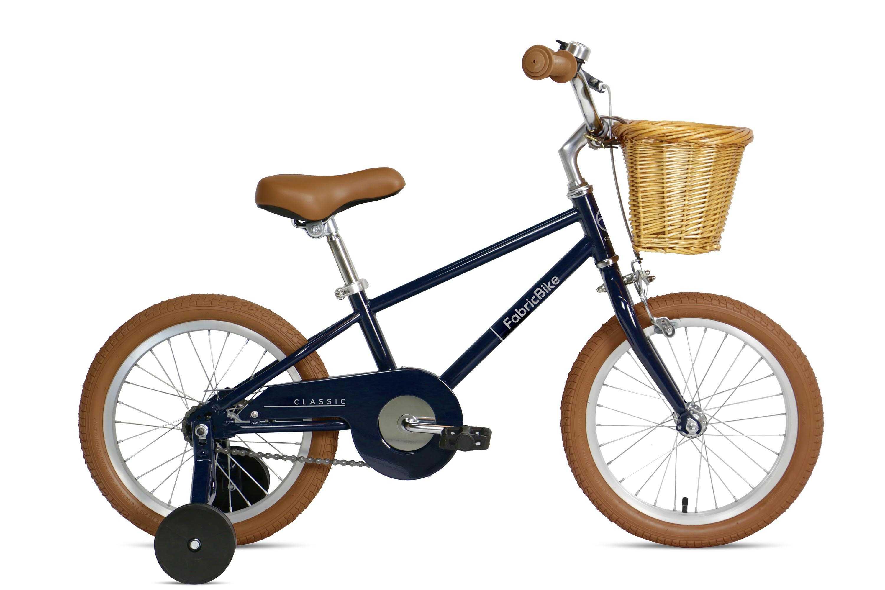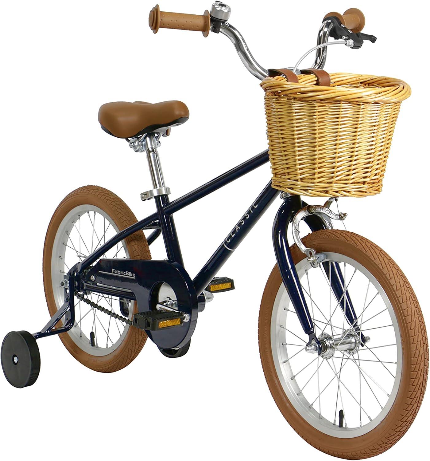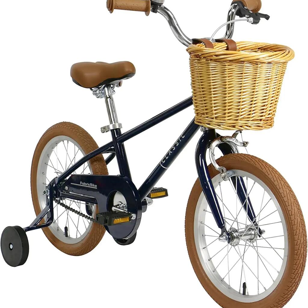 FabricBike KIDS CLASSIC children's bicycle: retro look inspired by the 60s, training wheels, basket, quality brakes and timeless design. Perfect for starting out in style.