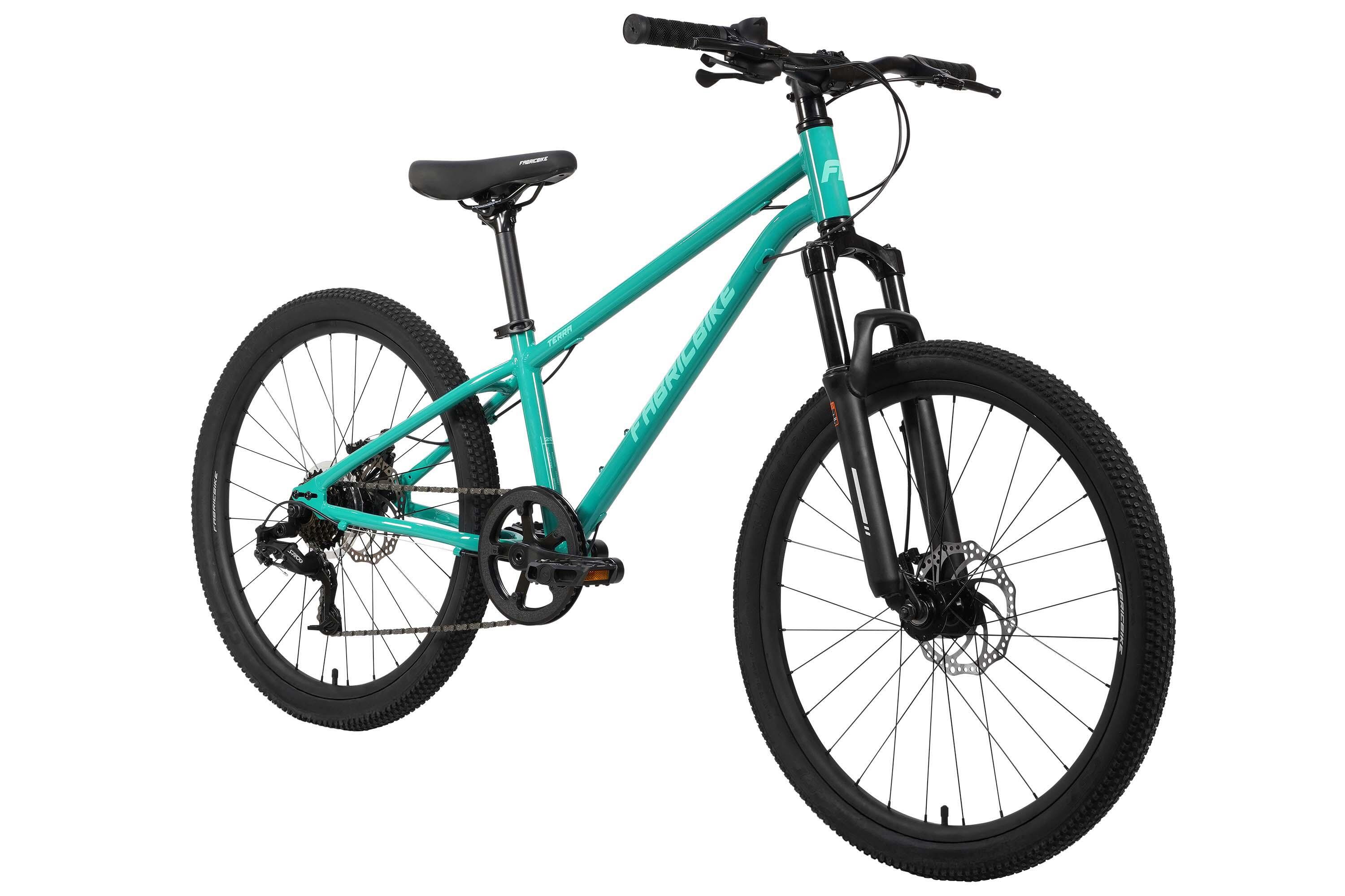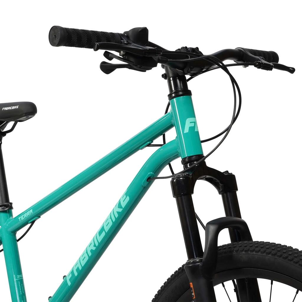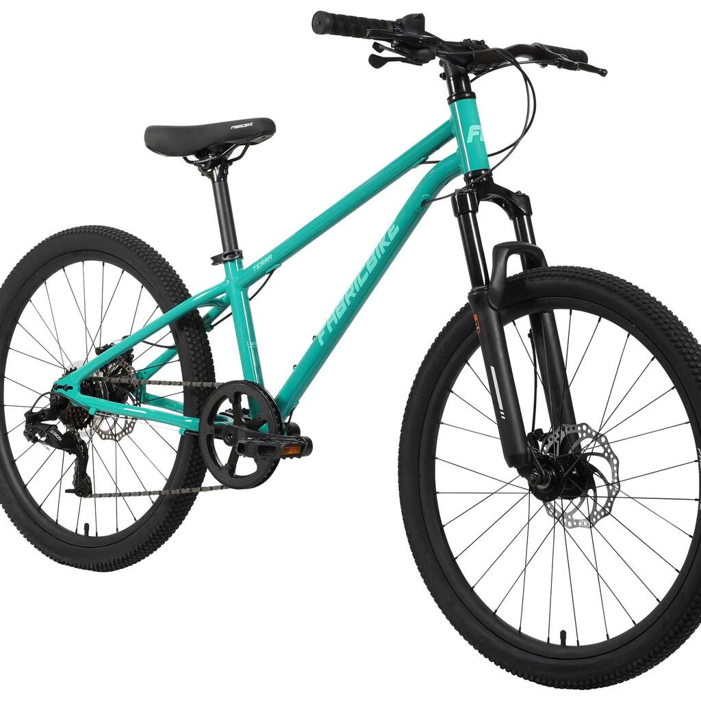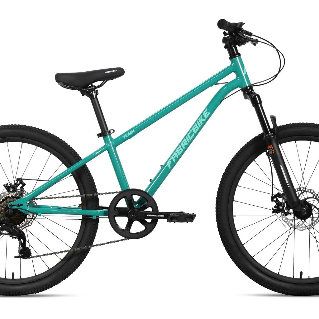 The FabricBike TERRA is a 24" mountain bike for children aged 8 to 12. Robust, with front suspension, disc brakes and high-traction tires for safe and exciting adventures.