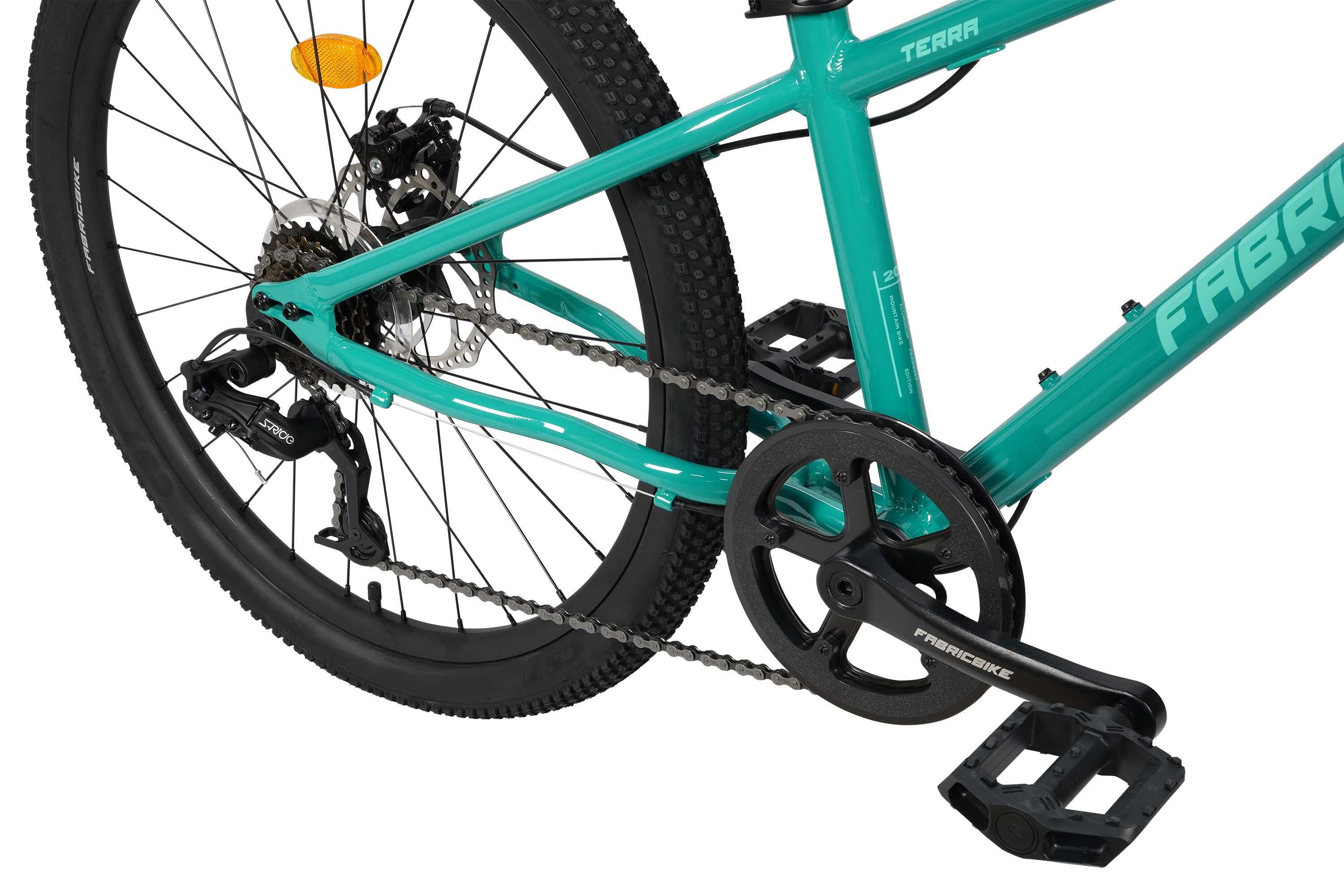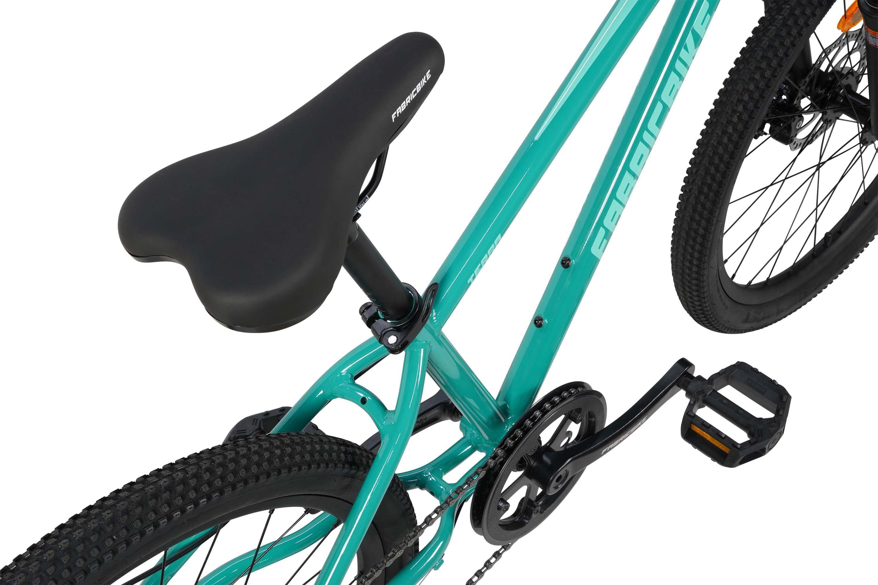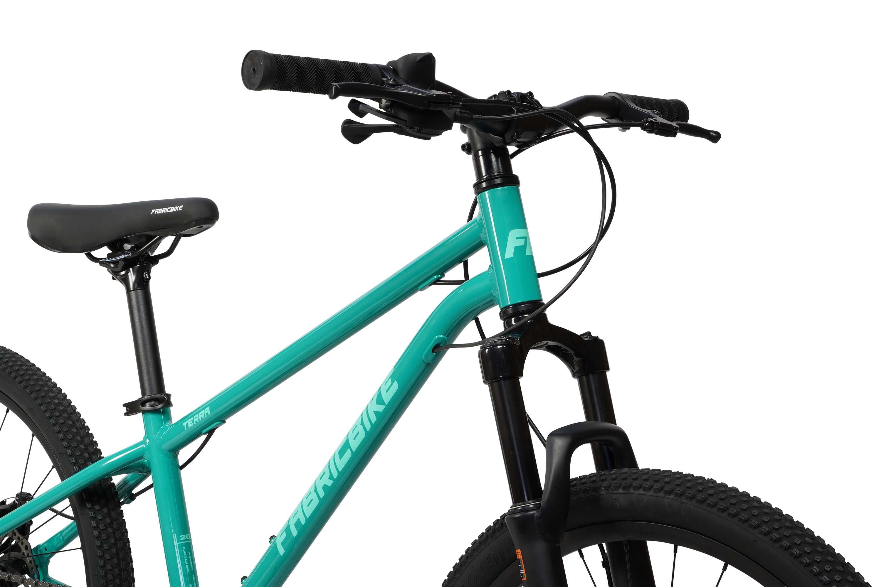 The FabricBike TERRA is a 24" mountain bike for children aged 8 to 12. Robust, with front suspension, disc brakes and high-traction tires for safe and exciting adventures.