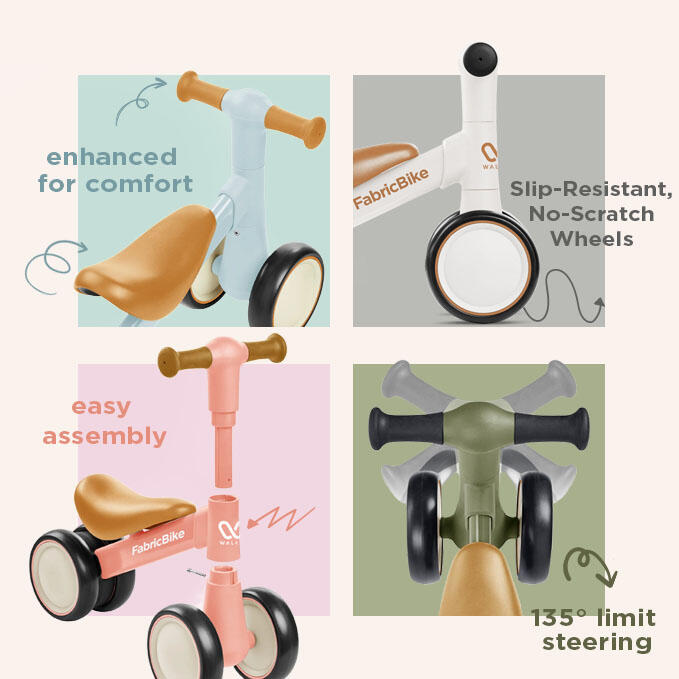 The Fabricbike Walker is the ideal balance bike for 10-24 month olds: light, stable, without pedals, perfect for learning balance and coordination, indoors and outdoors.