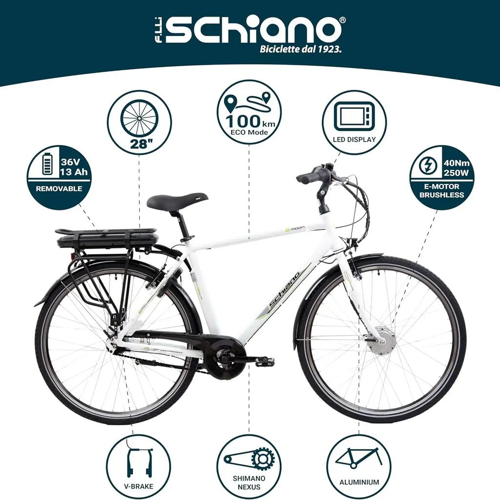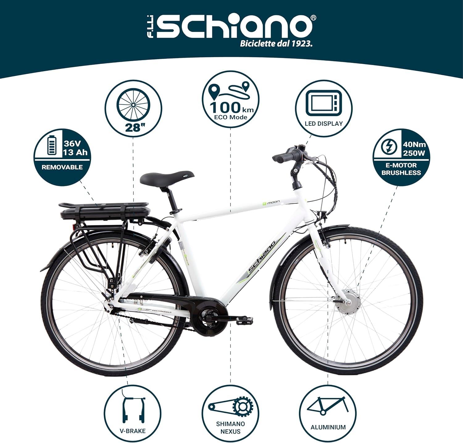 E-Moon 28-inch electric bicycle, e-bike for men, e-bike with electric motor battery on rear luggage rack, pedal-assist bicycles, aluminium frame, rigid fork