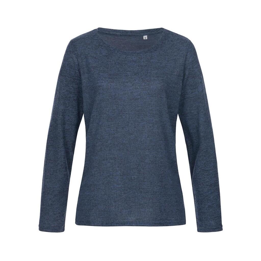 Womens/Ladies Knitted LongSleeved TShirt (Marina Blue Melange)