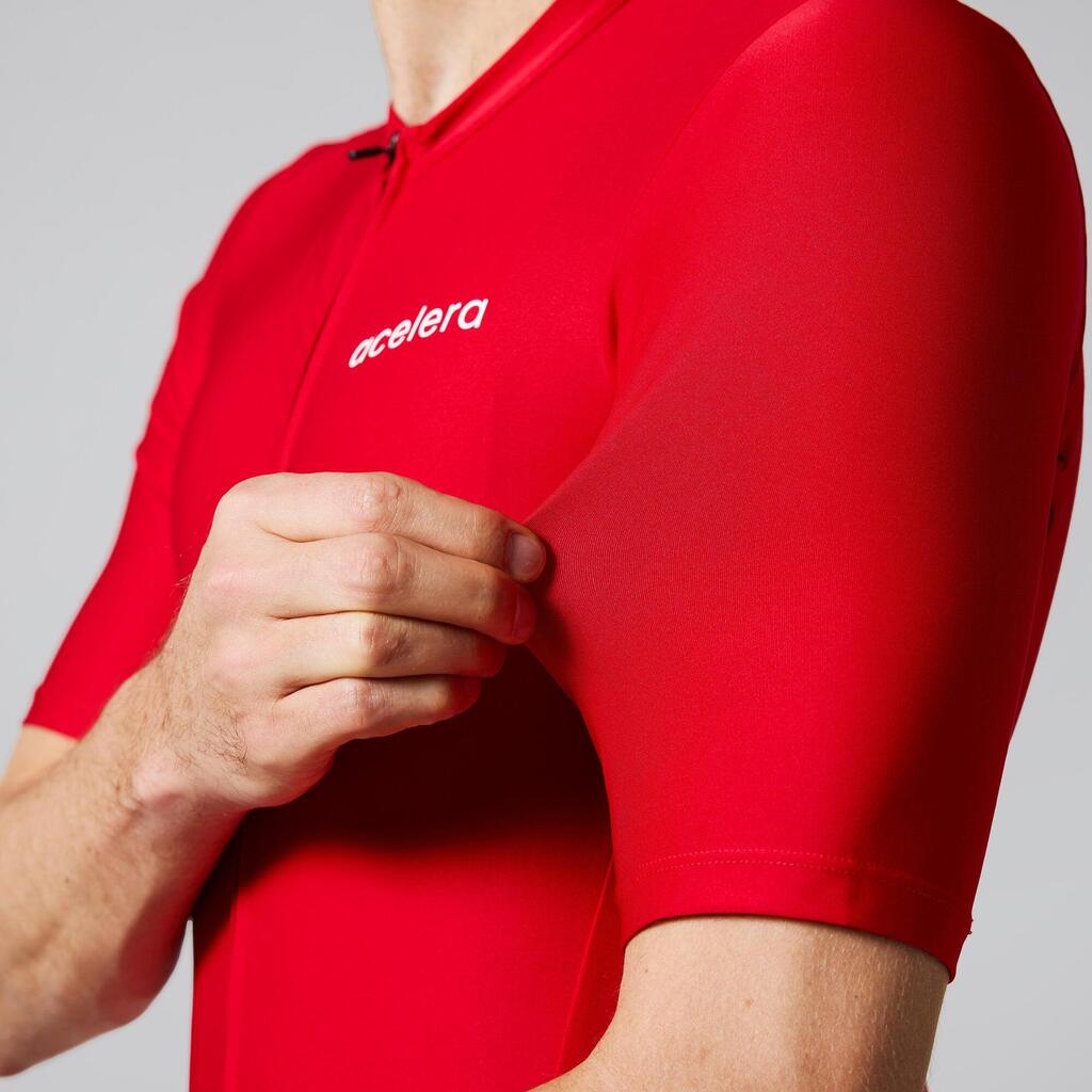 Breathable cycling jersey with elastic fit, silicone gripper and full zip. Ideal for warm weather and intense rides thanks to quick-drying fabric and SPF50 protection.