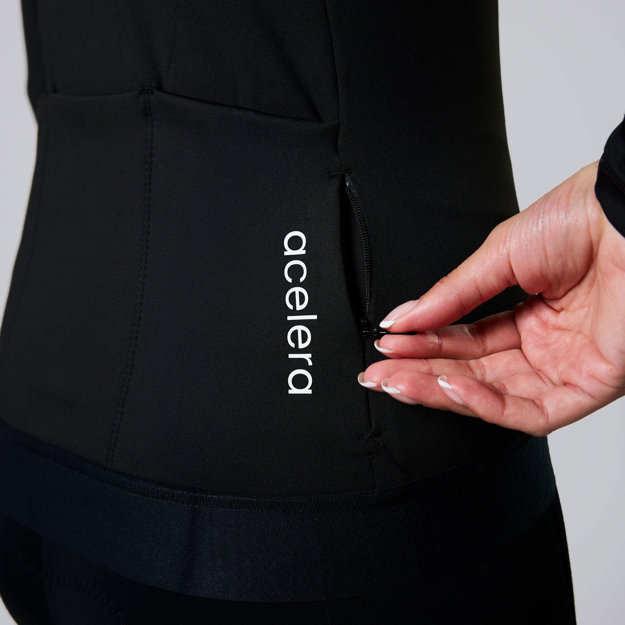 Stay warm during the colder days. This cycling shirt is lined with fleece and suitable for rides between 5 and 15 degrees.