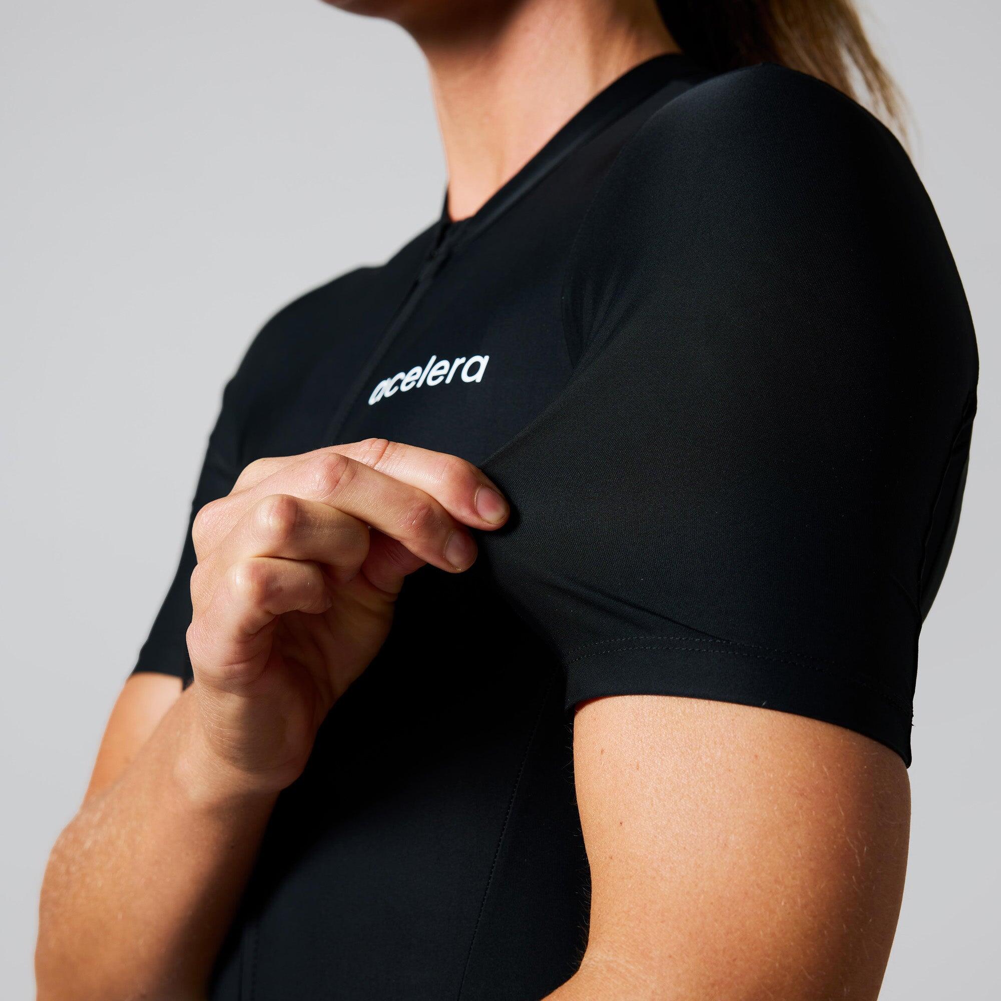 Cooling women's cycling jersey with Ice Feel fabric, UV protection, sturdy gripper, three deep back pockets, smooth zip and an anatomical fit for optimal performance during warm rides.