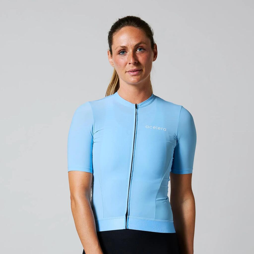 Cooling women's cycling jersey with Ice Feel fabric, UV protection, sturdy gripper, three deep back pockets, smooth zip and an anatomical fit for optimal performance during warm rides.