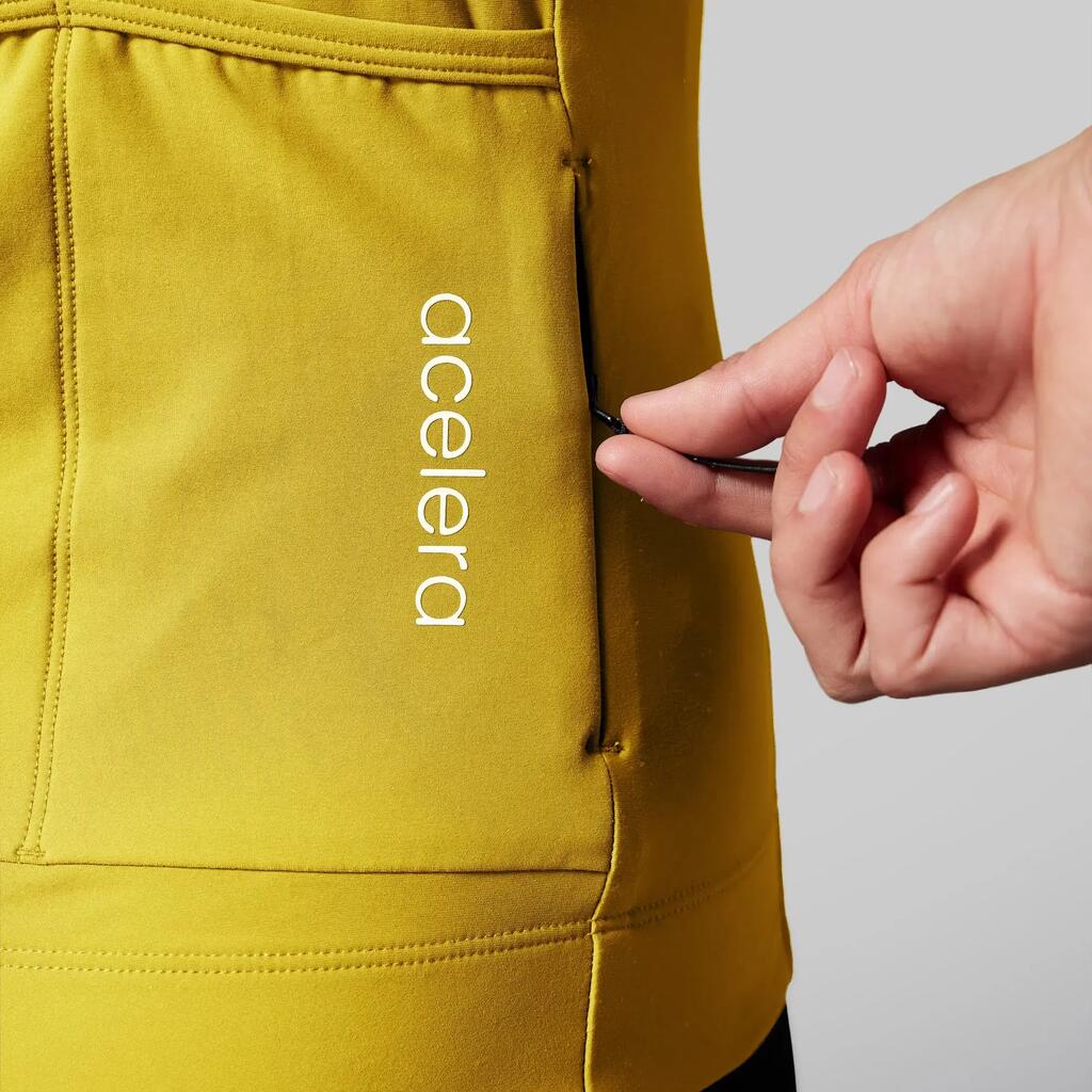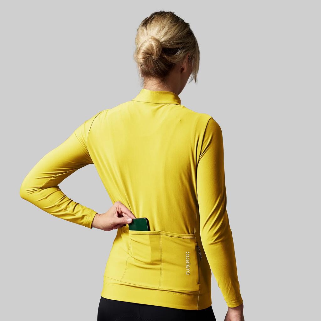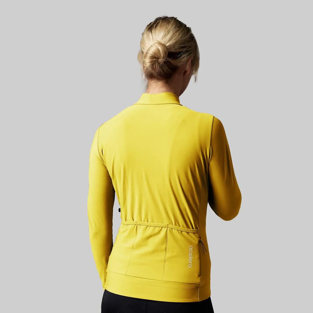 Long-sleeved cycling jersey for 8-18°C. Thick elastic fabric, breathable, wide silicone gripper, 3 pockets and race fit. Ideal for cool rides with comfort and performance.
