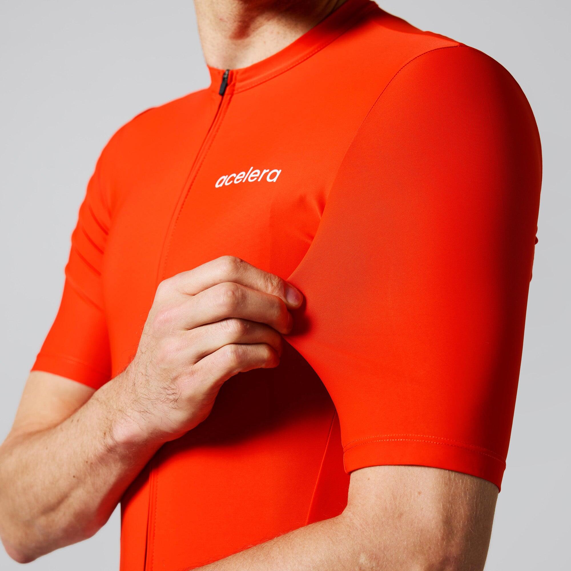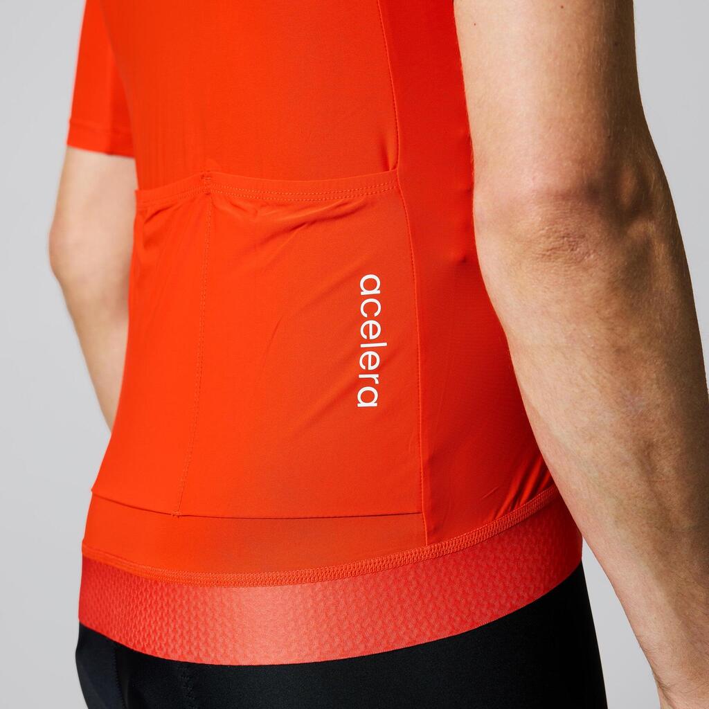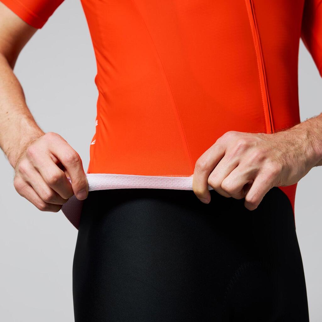 Short-sleeved cycling jersey for avid cyclists. With many practical features for cycling, such as a zip pocket, elastic sleeves and a silicone gripper at the bottom of the jersey.