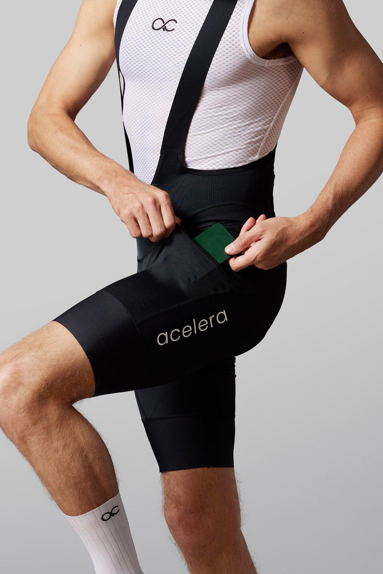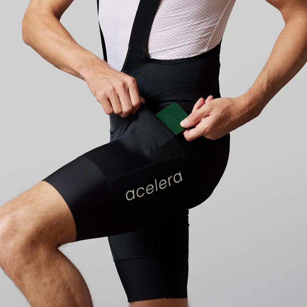 Experience ultimate comfort with the Acelera Intermediate Cargo Bibshort, extra cargo pockets, comfortable chamois, and no-sweat fabric. Perfect for gravel, MTB, and road cycling.