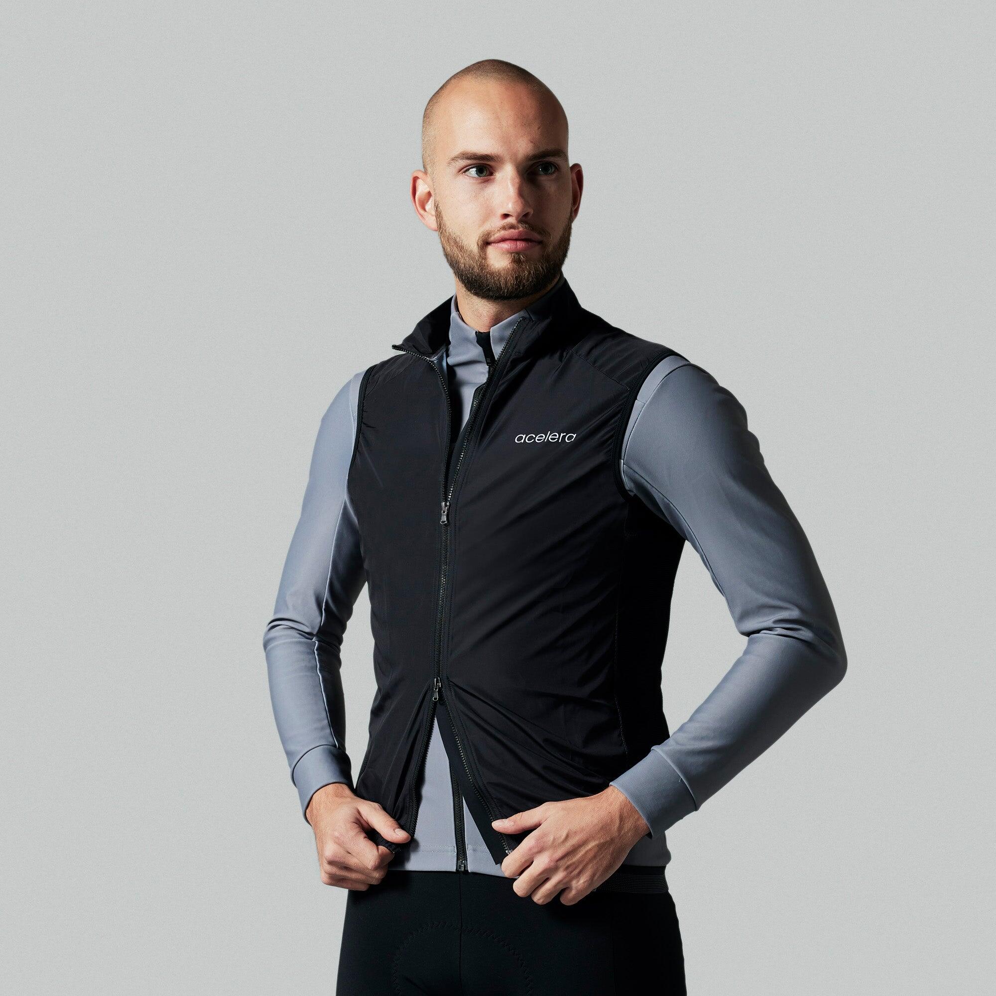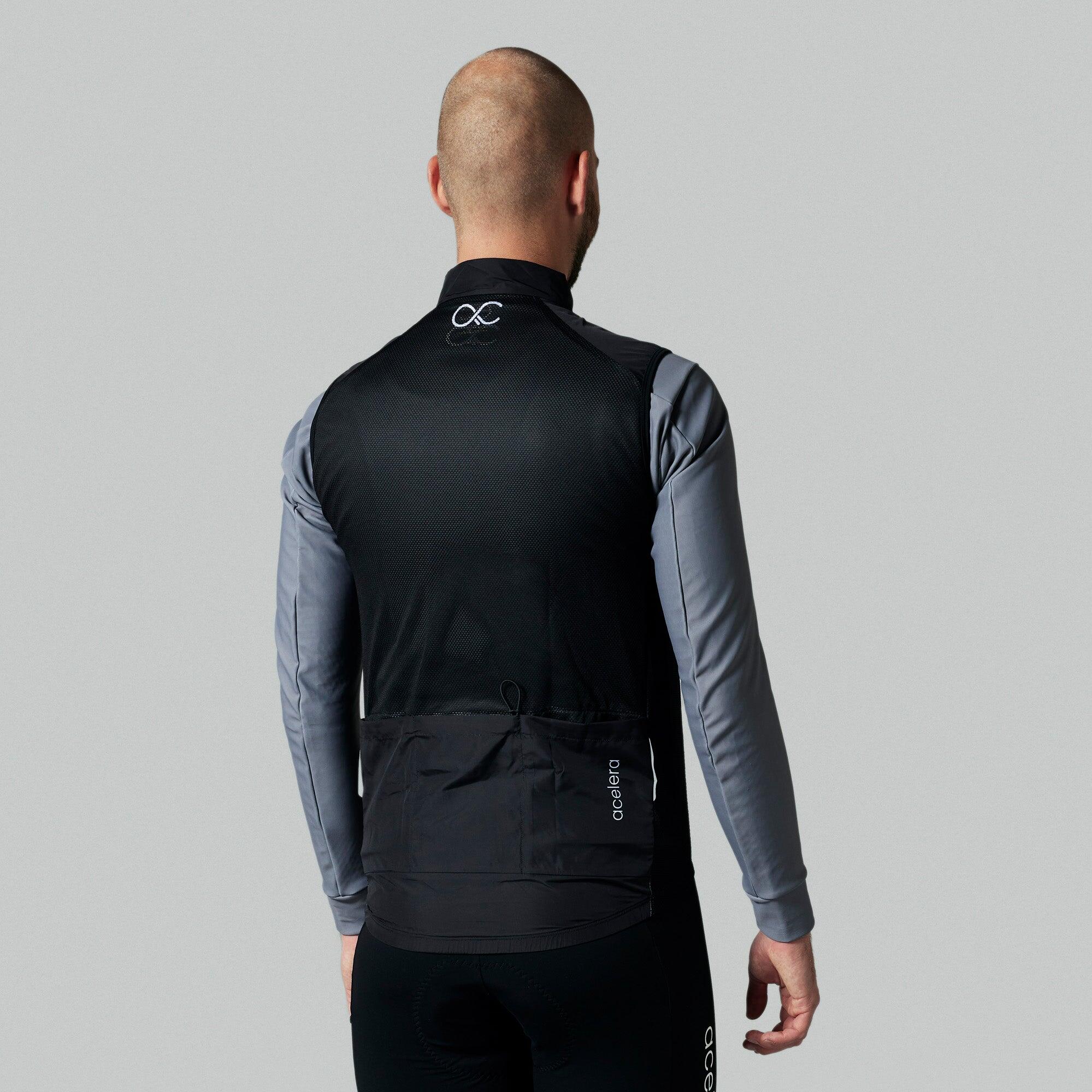 Lightweight and compact windbreaker gilet: windproof at the front, breathable at the back. Double zip for ventilation, side pockets and foldable into your cycling jersey. Perfect for every ride!