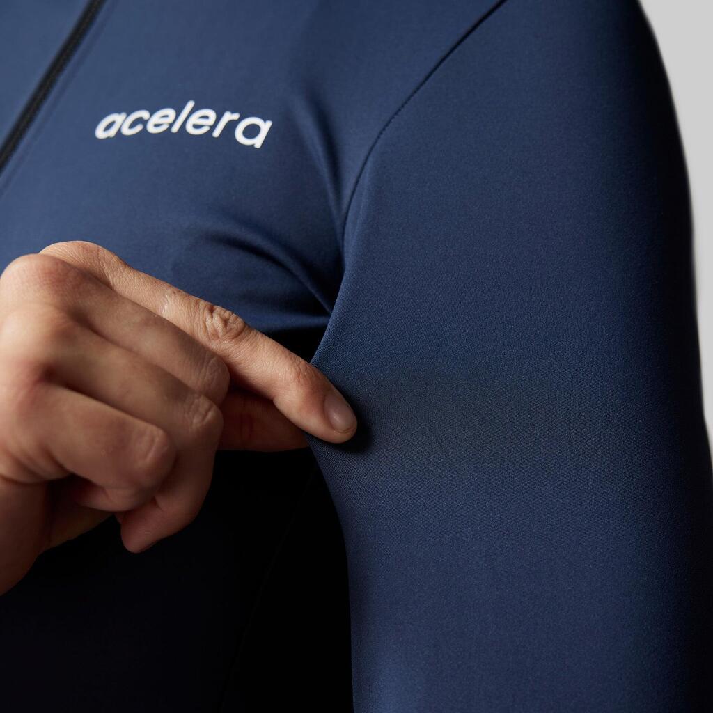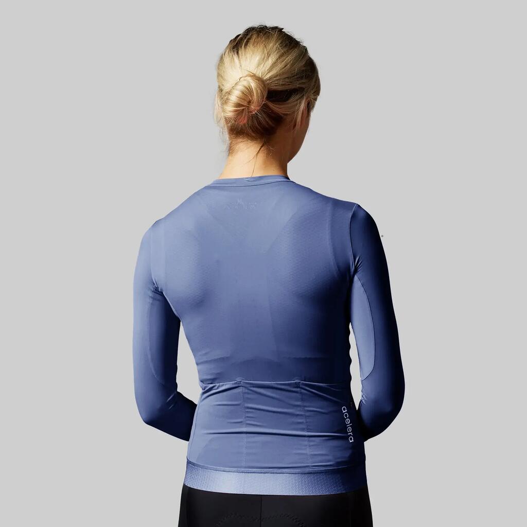 Long-sleeved cycling jersey for 12-25°C. Aerodynamic fabric, breathable, wide silicone gripper, 3 pockets and race fit. Ideal for changing temperatures.