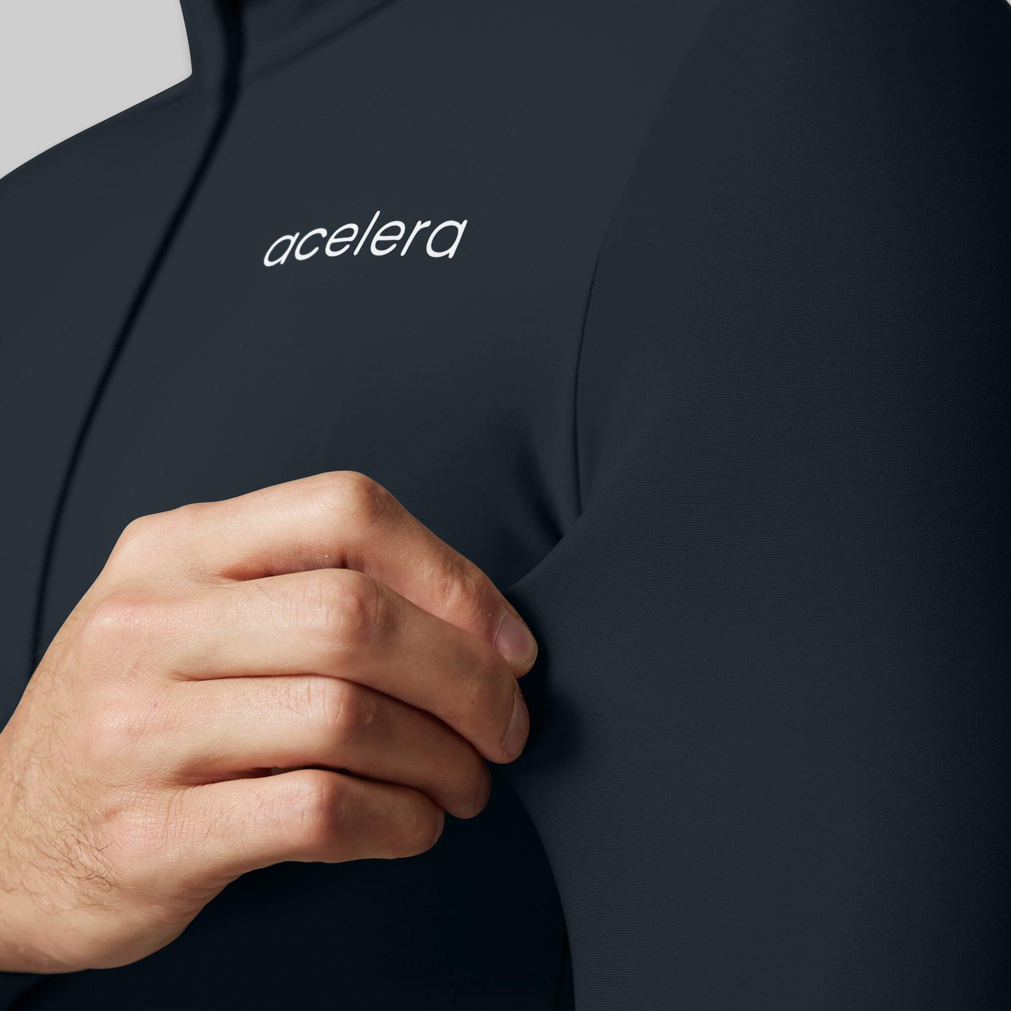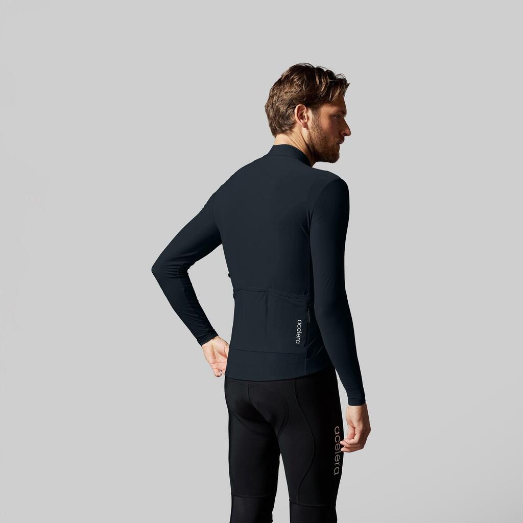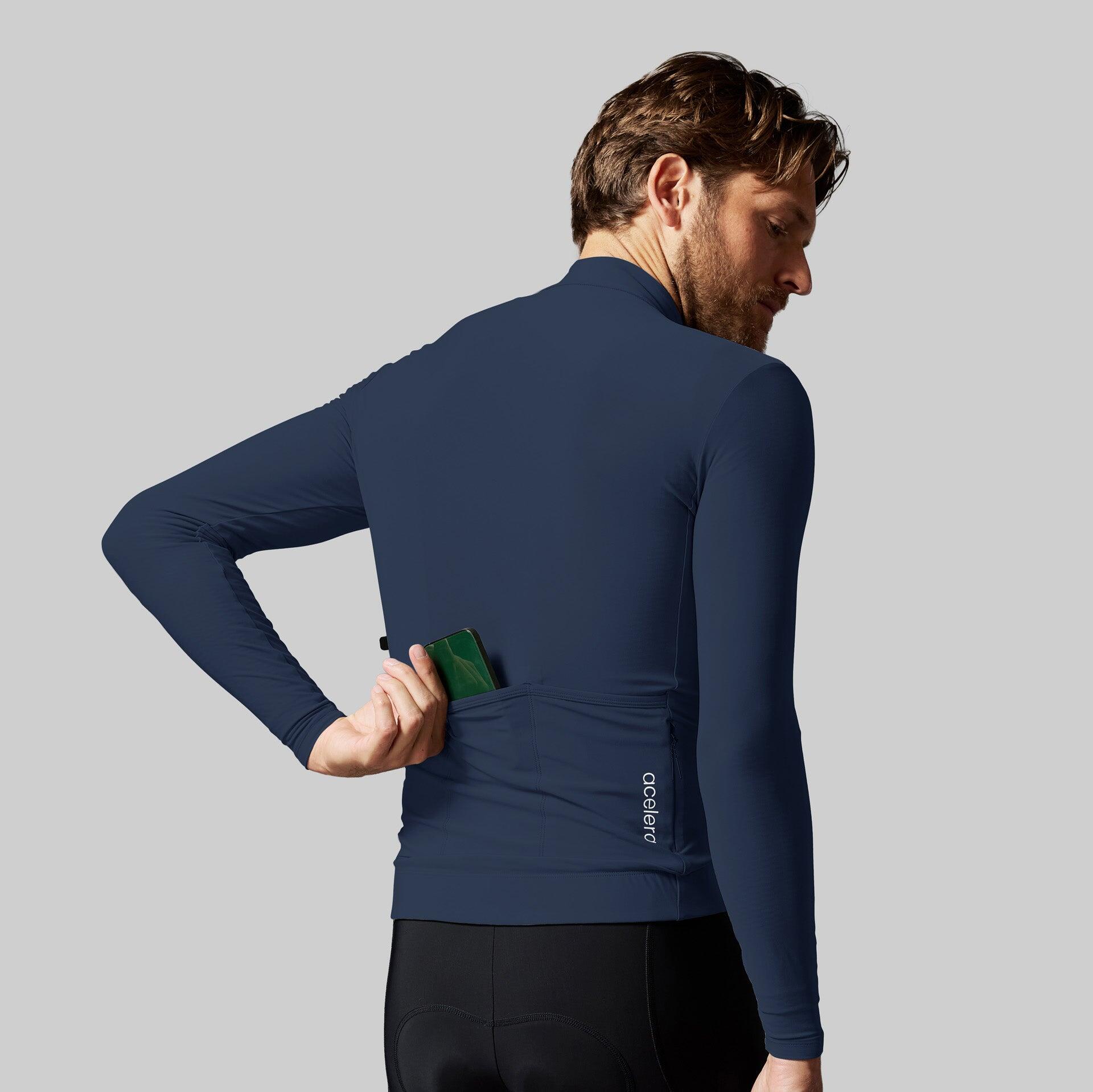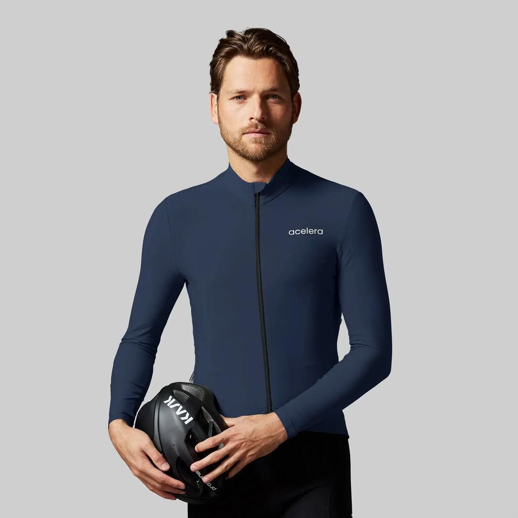 Long-sleeved cycling jersey for 8-18°C. Thick elastic fabric, breathable, wide silicone gripper, 3 pockets and race fit. Ideal for cool rides with comfort and performance.