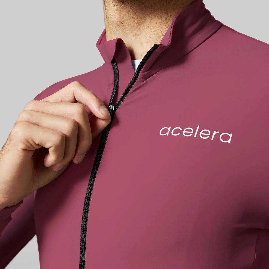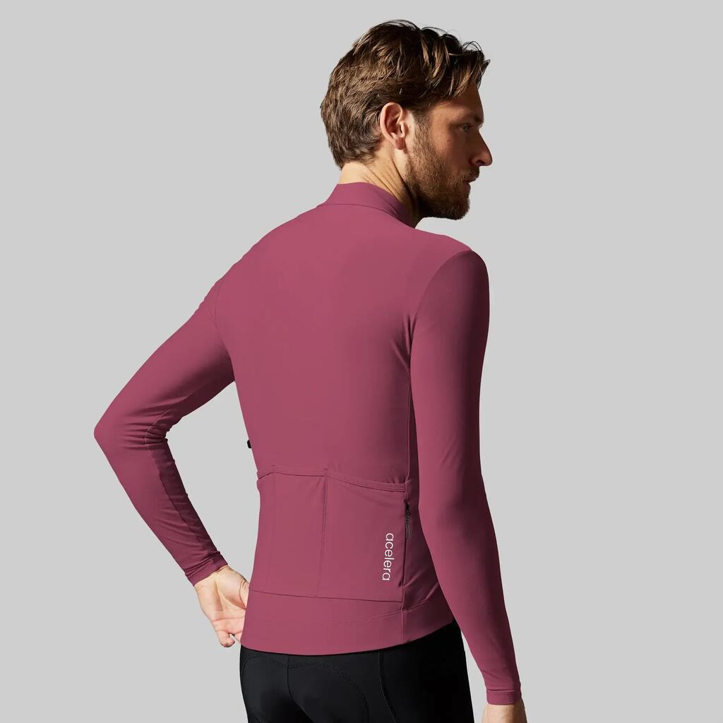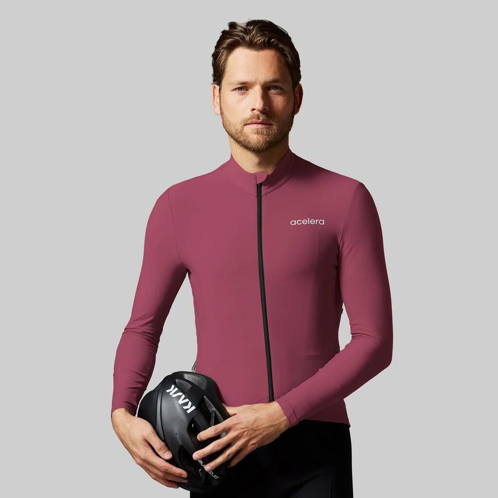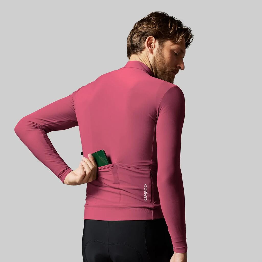 Long-sleeved cycling jersey for 8-18°C. Thick elastic fabric, breathable, wide silicone gripper, 3 pockets and race fit. Ideal for cool rides with comfort and performance.